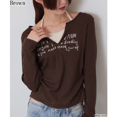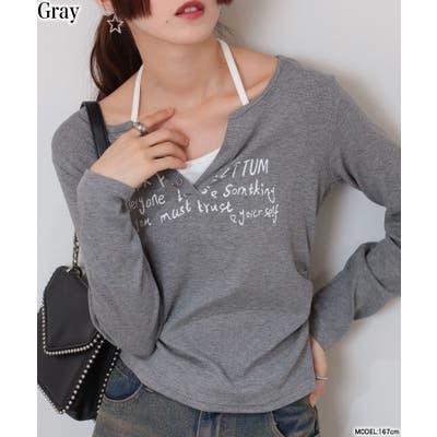 レイヤード風のデザインになっていて、1枚で抜け感のあるコーディネートが完成します。