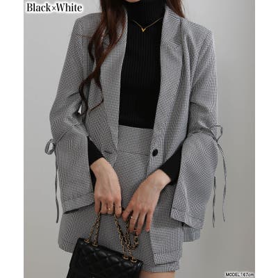 上下2点セット リボン付きテーラードジャケット+ミニスカパン セットアップ