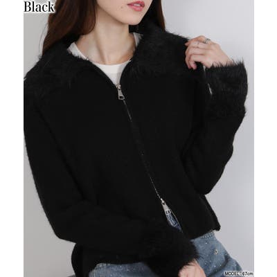 ふわふわのシャギー素材の襟と袖がガーリーでかわいらしいニットカーディガン。