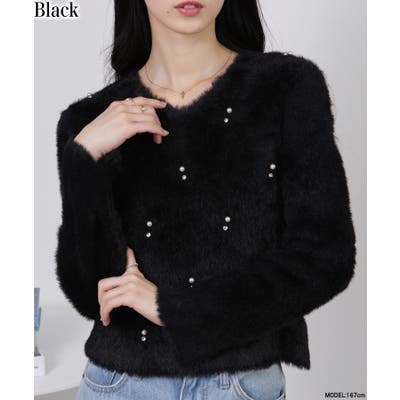 着用するだけで秋服冬服コーデの主役になる、ビジューとパールが華やかなニット。