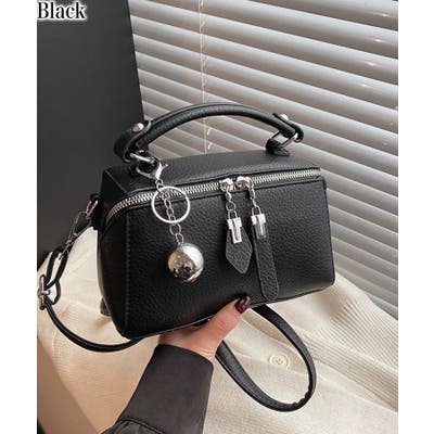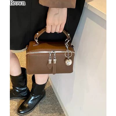 トレンド感のあるバニティ型デザインとボール型チャームがポイントのショルダーバッグ。
