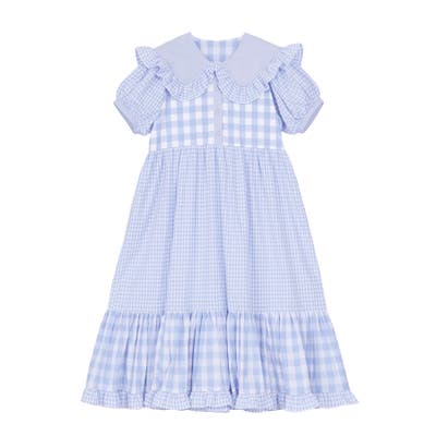 大きめのフリル襟や大きさの違うギンガムチェックを