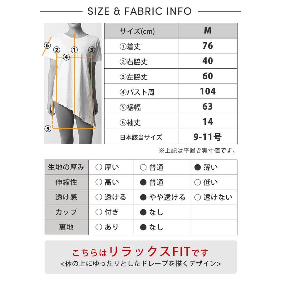 | Mサイズ [9-11号]着丈76 / 右脇丈40 / 左脇丈60 / バスト周104 / 裾幅63 / 袖丈1447 【素材】コットンスラブ(綿)100% 【原産国】インドネシア |