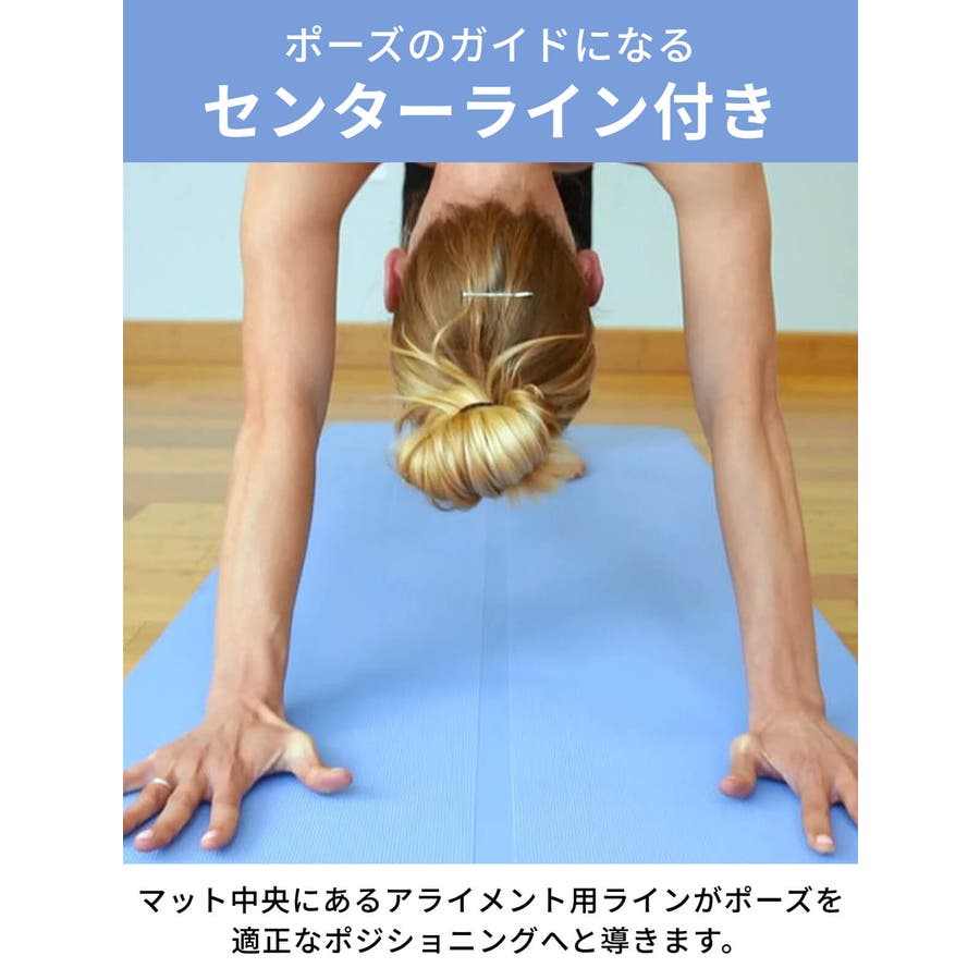 マットの真ん中にあるアライメント用のラインが、より安全にポーズの適正なポジショニングへ