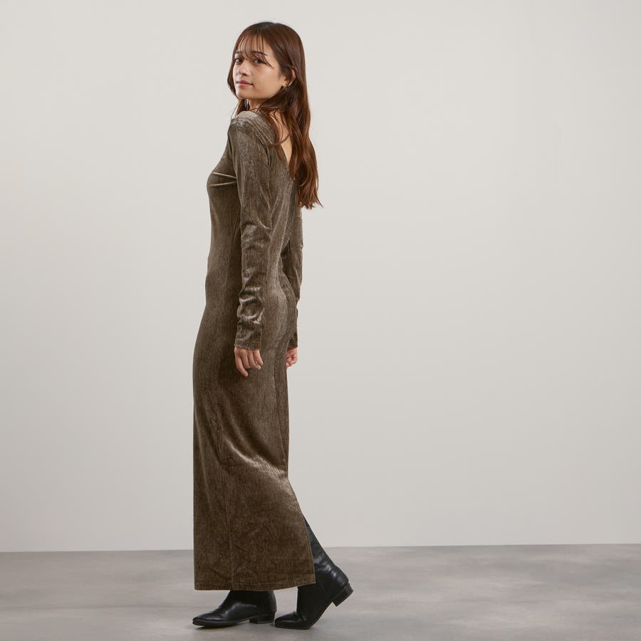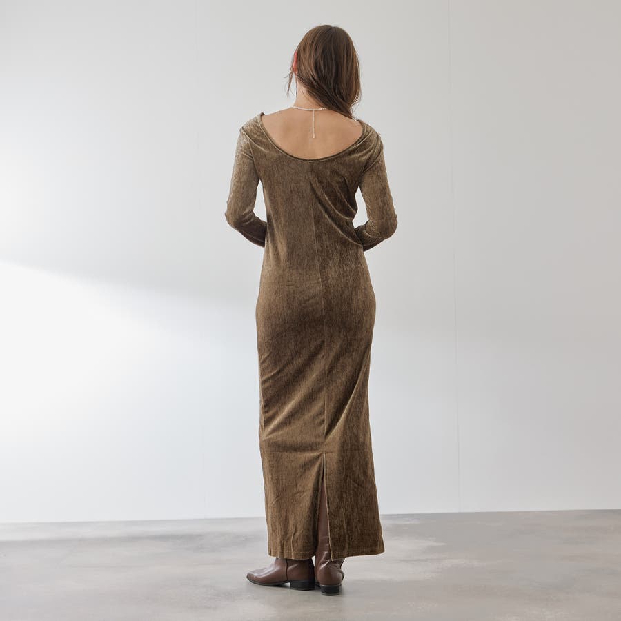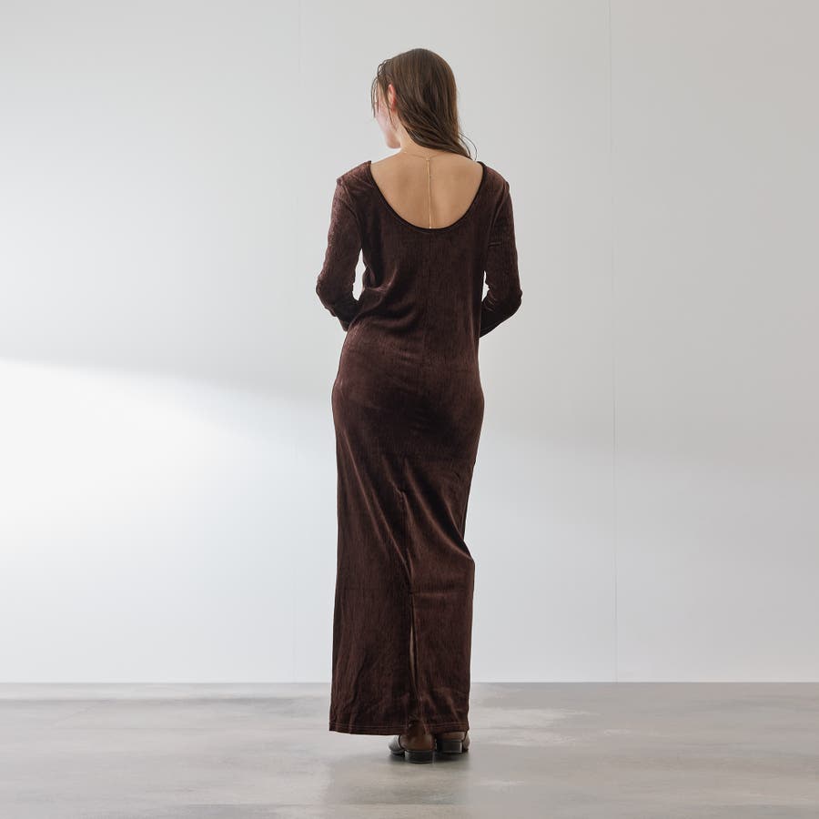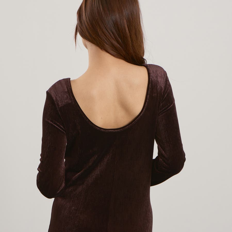 後下がりが深めに開いたベロア素材のジャージー(カットソー)ドレスです。