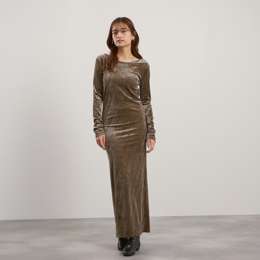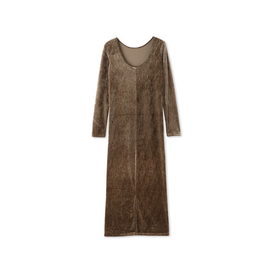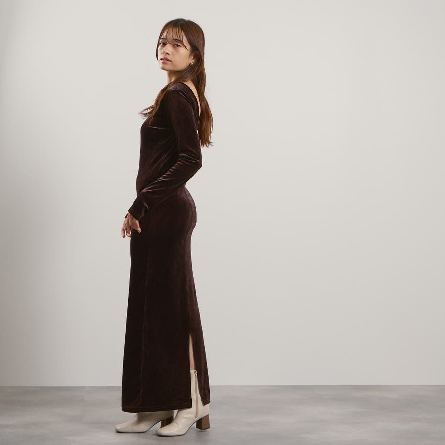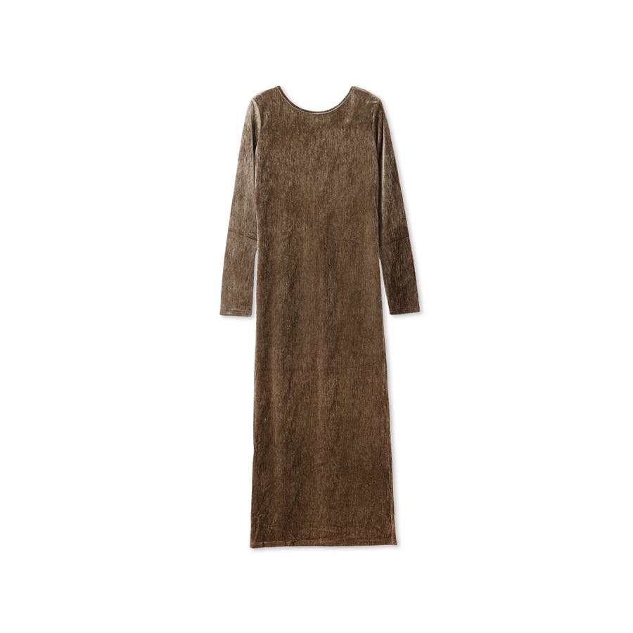 後下がりが深めに開いたベロア素材のジャージー(カットソー)ドレスです。