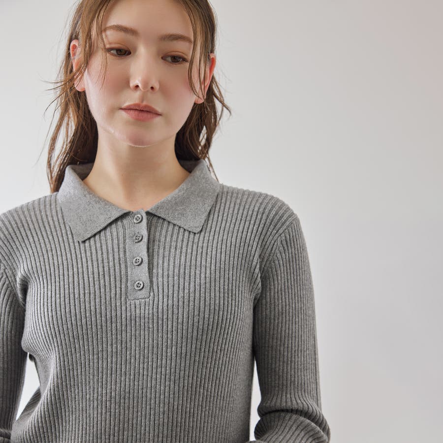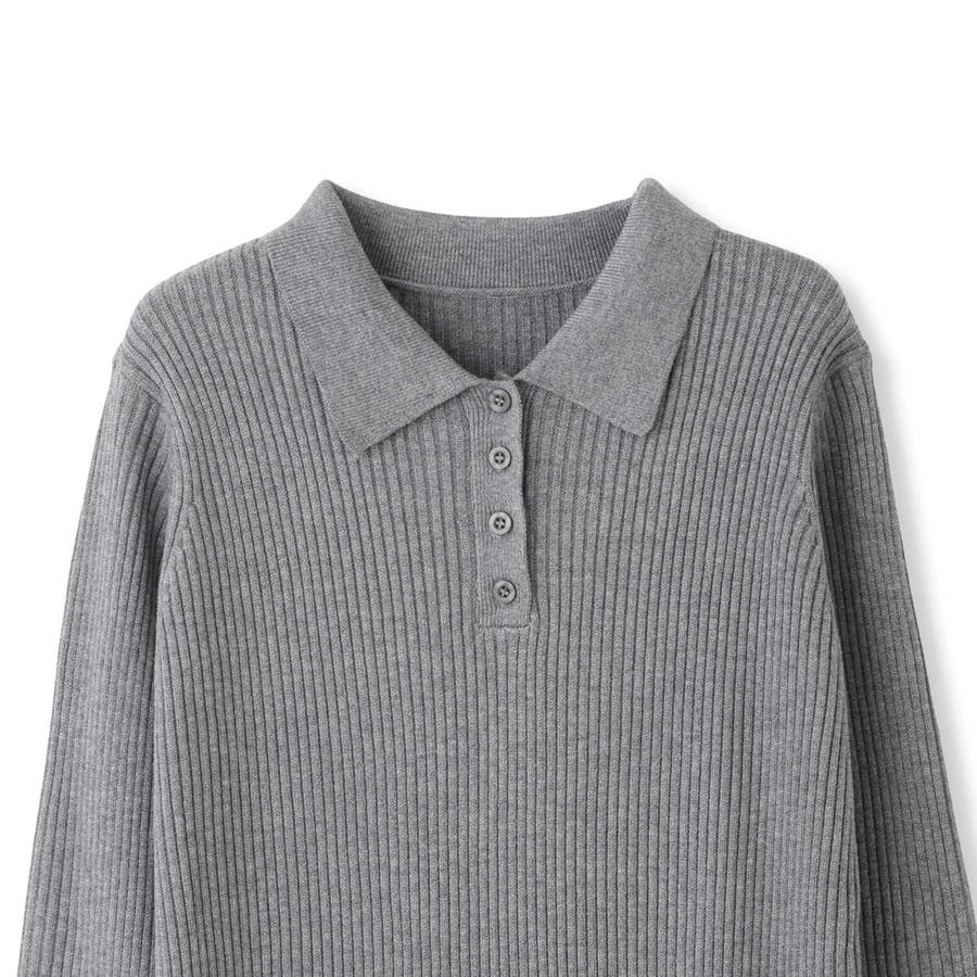 ポロカラーでほどよいきちんと感を演出しながら、リブ編み仕立てでストレスフリーな着心地です。