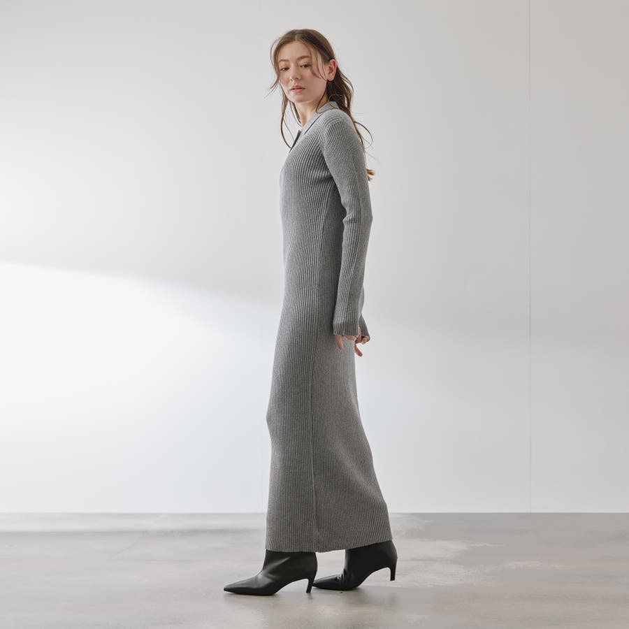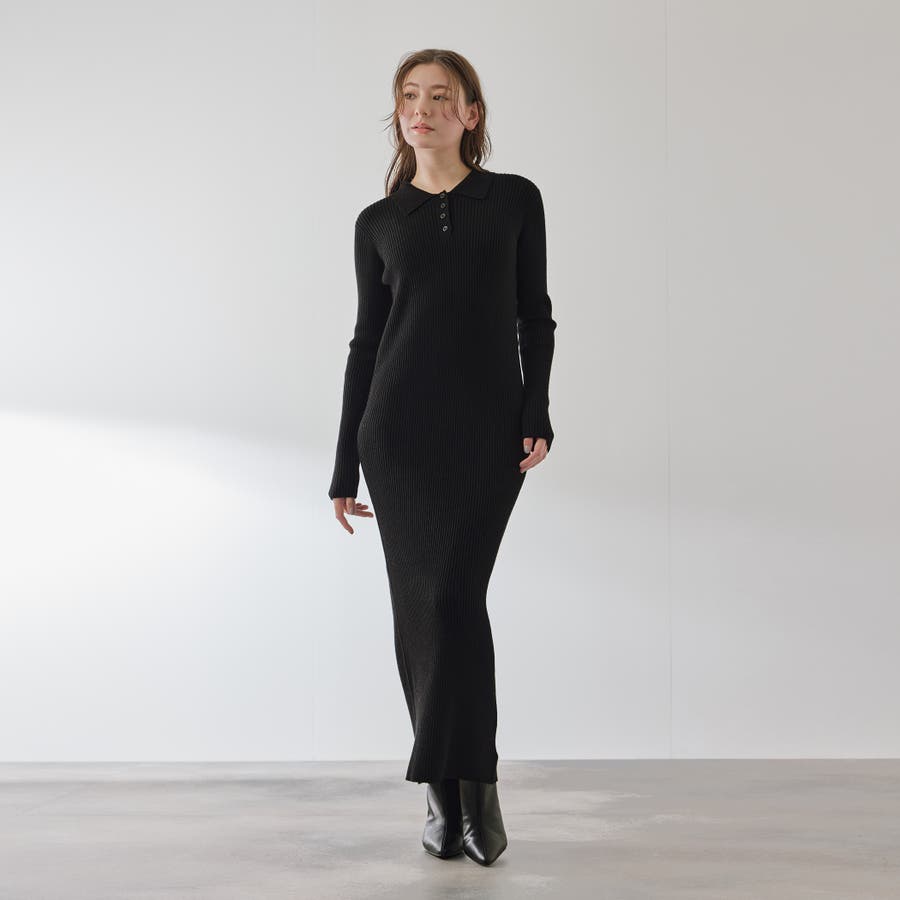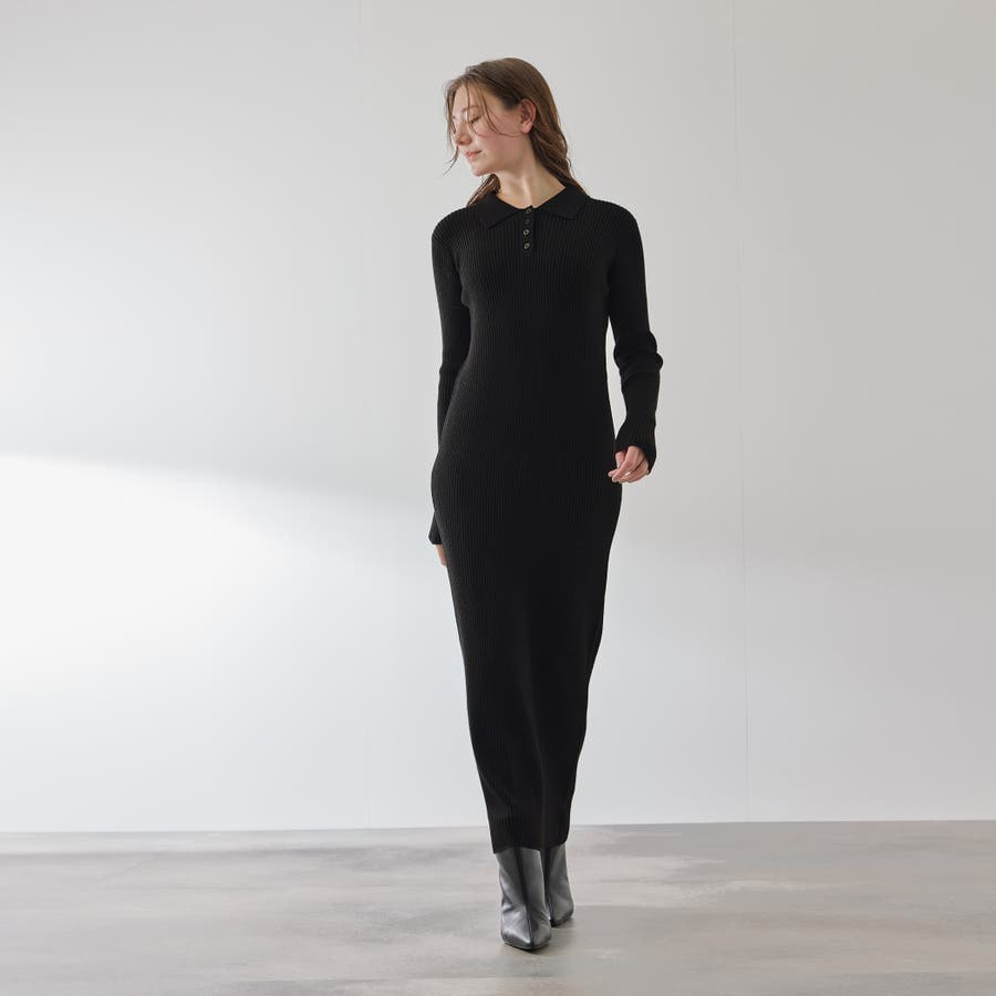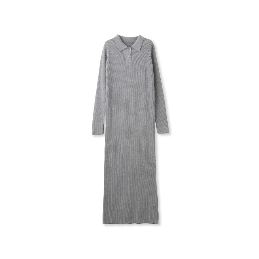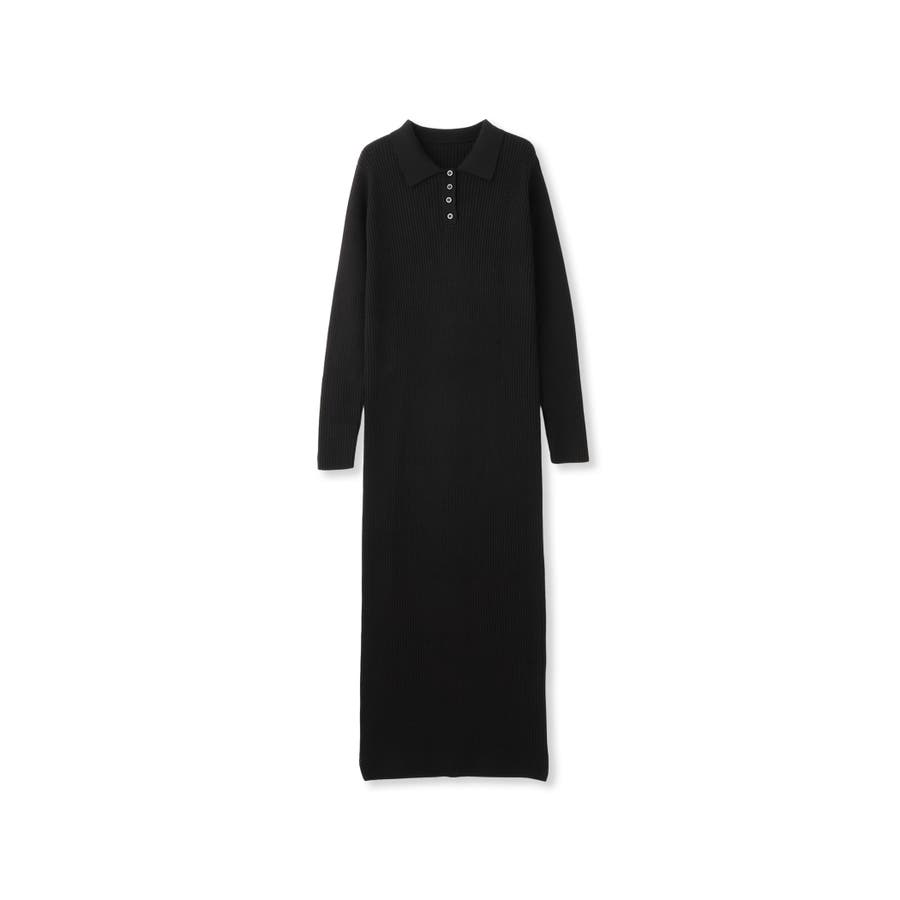 ポロカラーリブニットワンピース≪手洗い可能≫