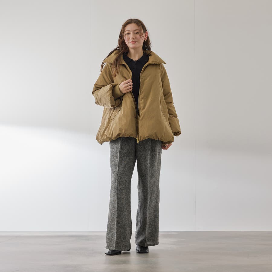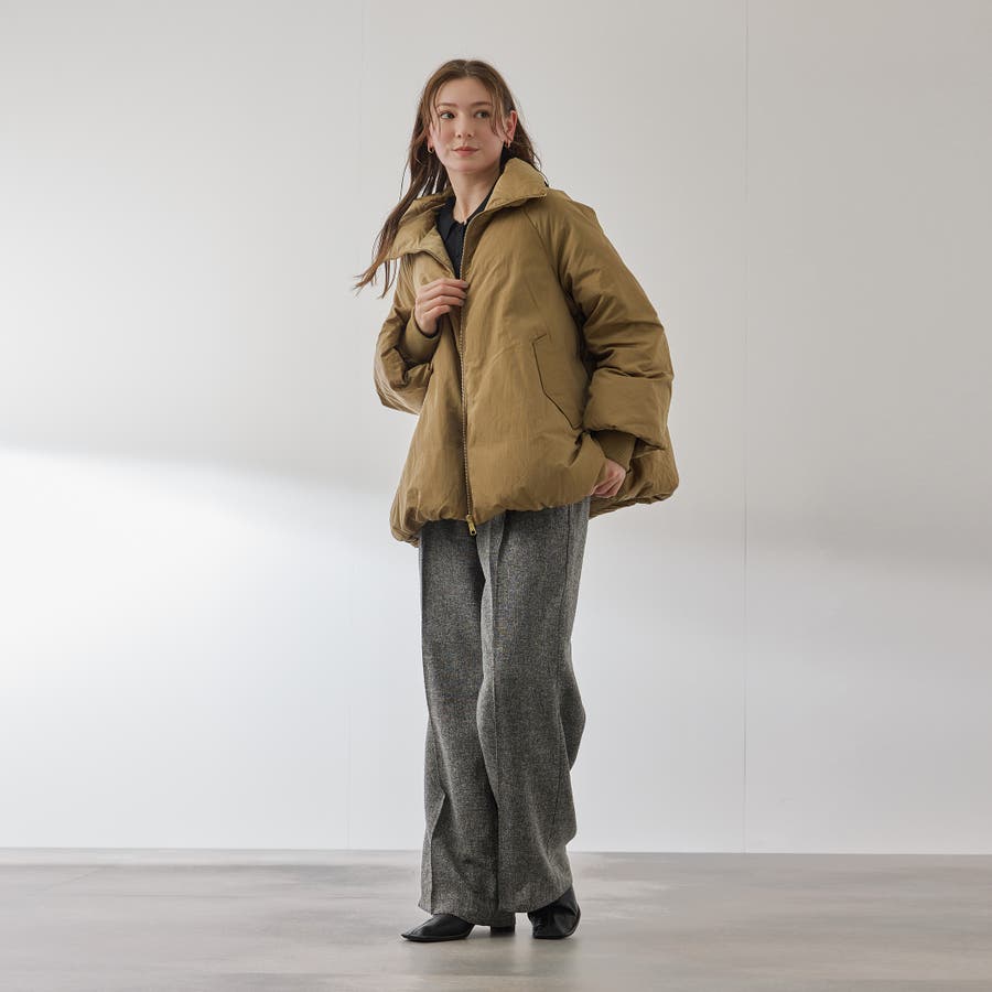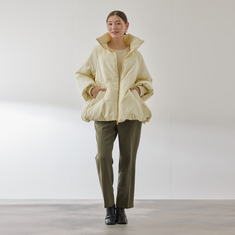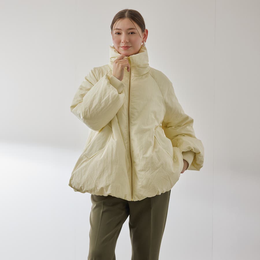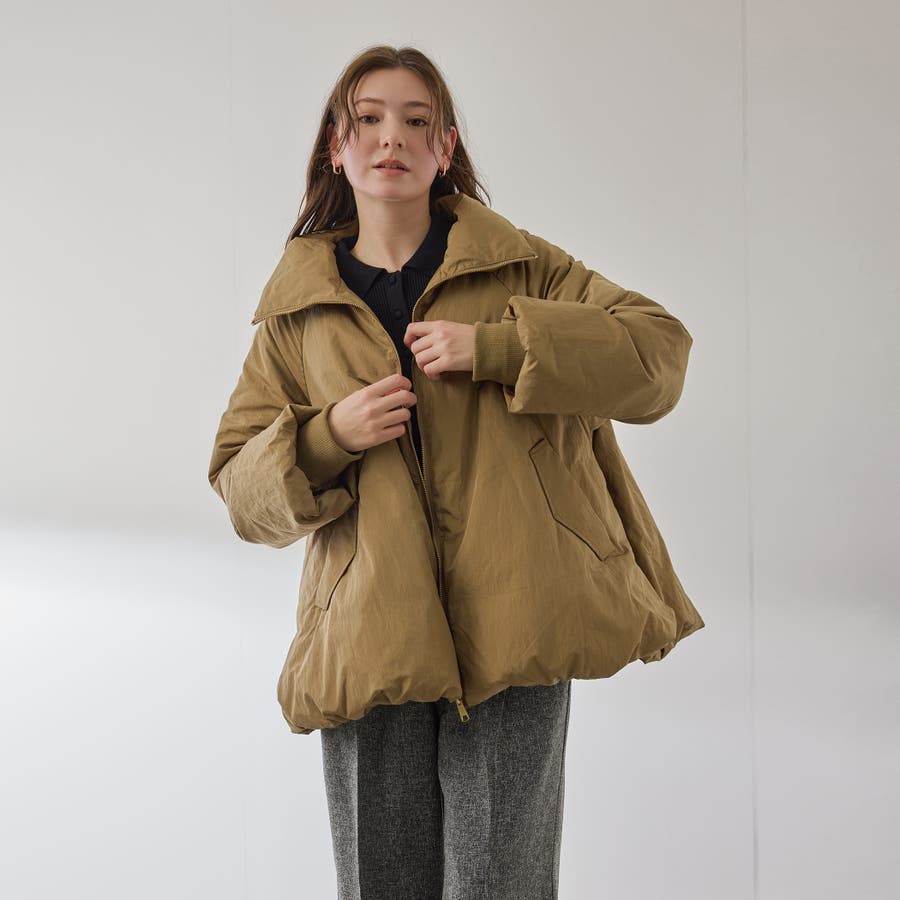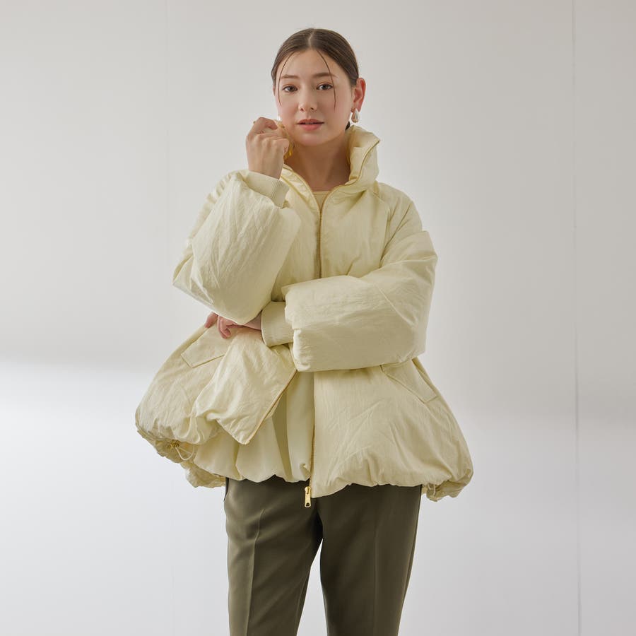 ダウン80%、フェザー20%のふんわりと丸みを帯びた優しいコクーンシルエットのダウンジャケットです。