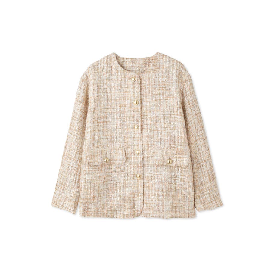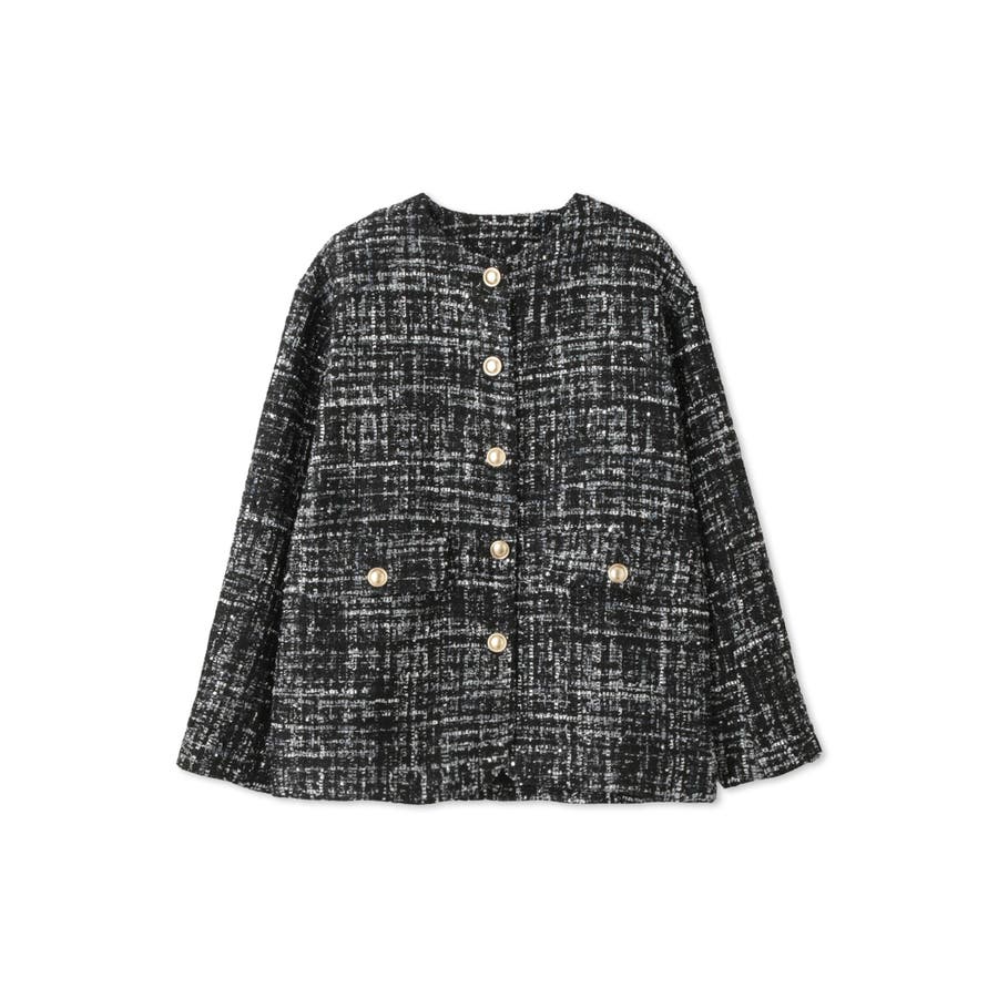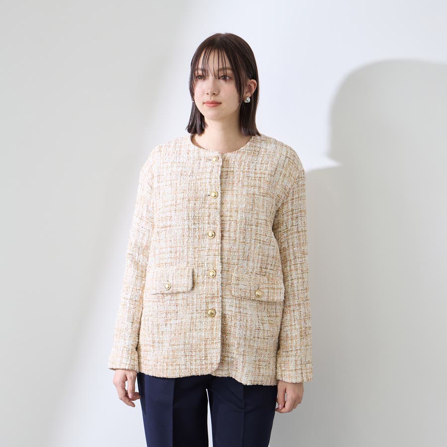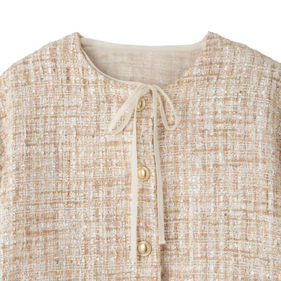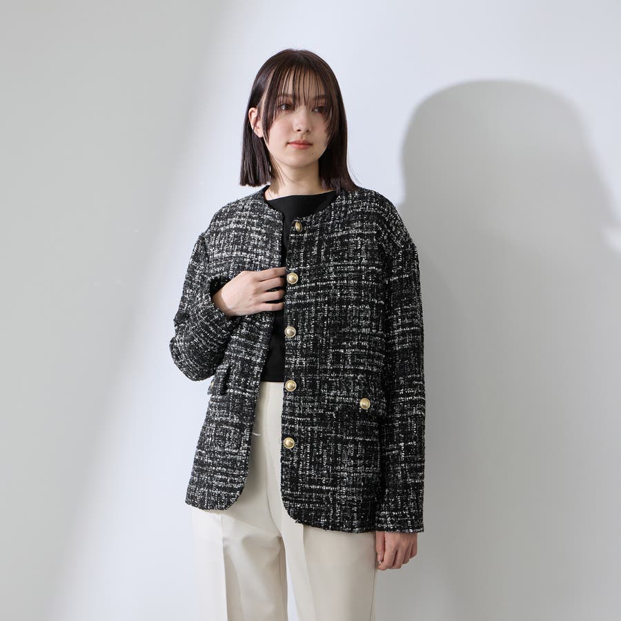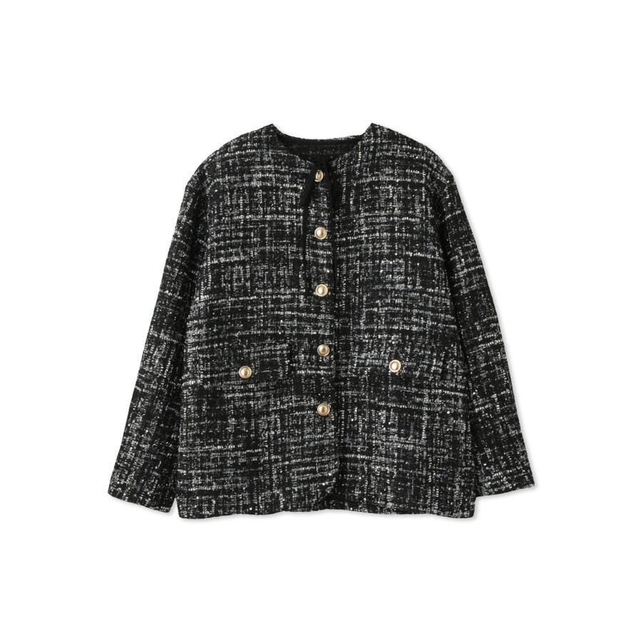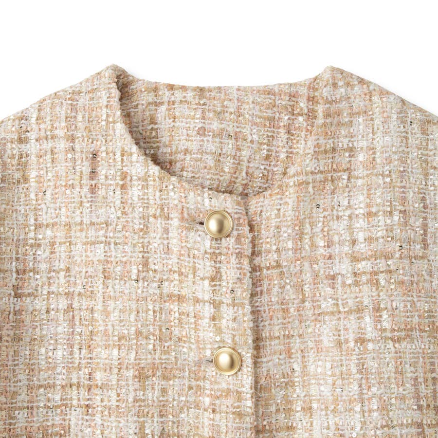 ミックスカラーのツィードジャケットと単品使いも可能なチュールカーディガンの2ピースセットアイテムです。