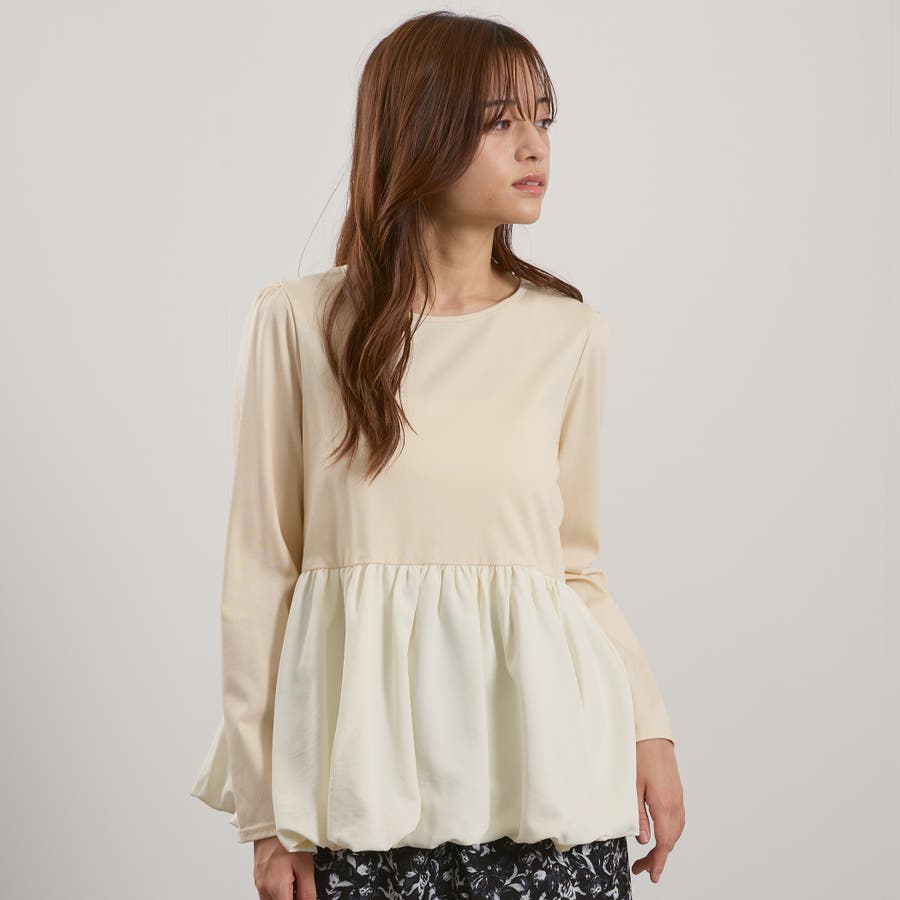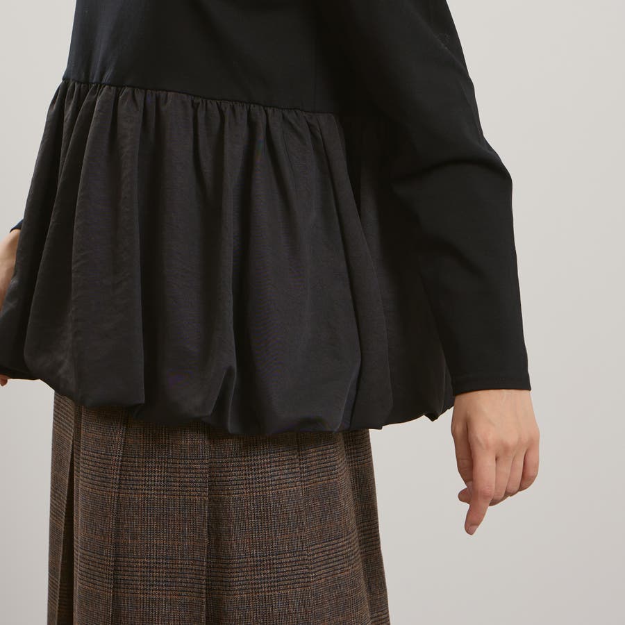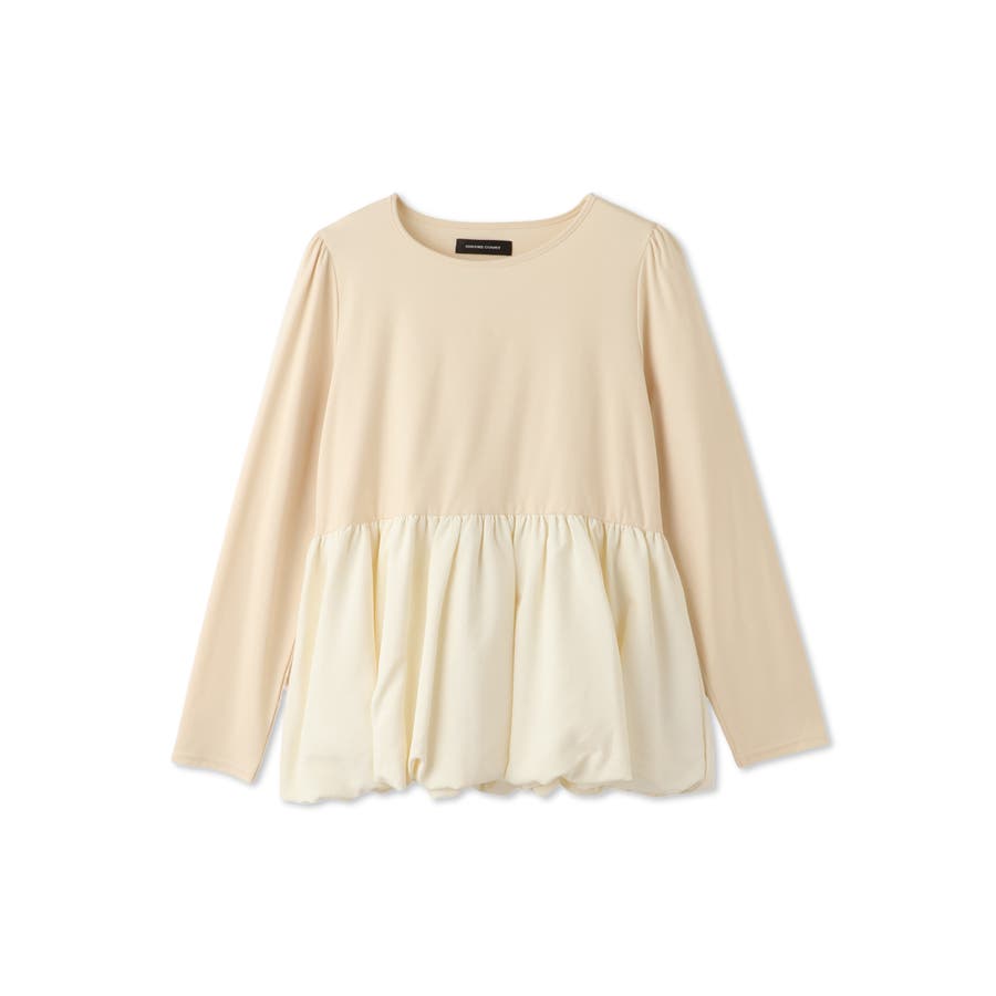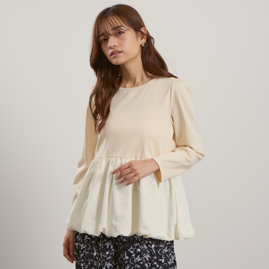 程よく肉感の感じられるシルキータッチのジャージー(カットソー)素材を使用し、ワッシャータフタ素材で切り替えバルーンヘムデザインにしたプルオーバーです。