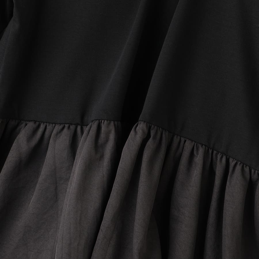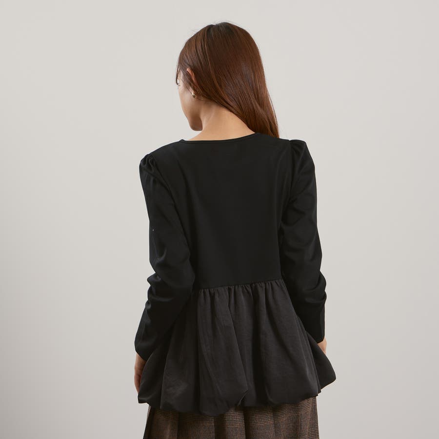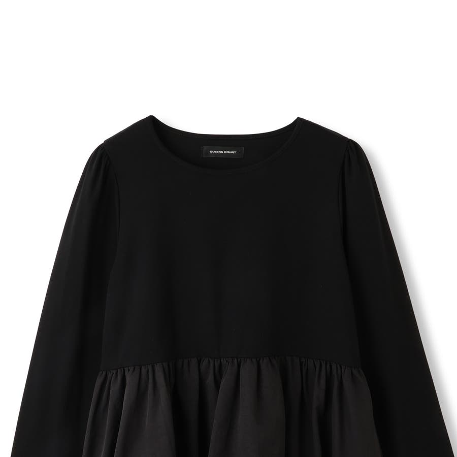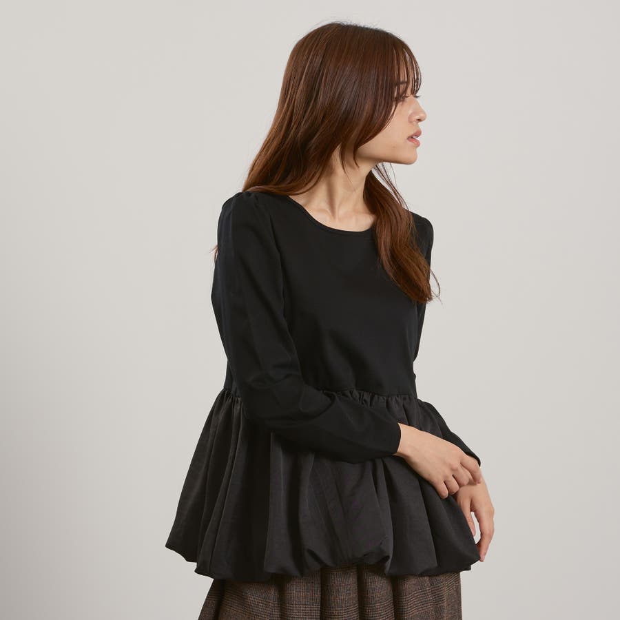 程よく肉感の感じられるシルキータッチのジャージー(カットソー)素材を使用し、ワッシャータフタ素材で切り替えバルーンヘムデザインにしたプルオーバーです。