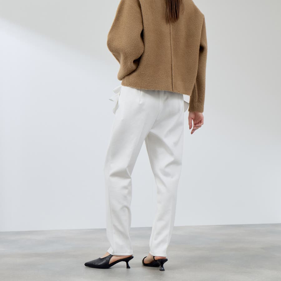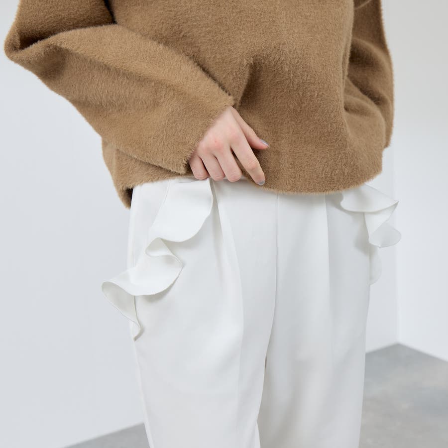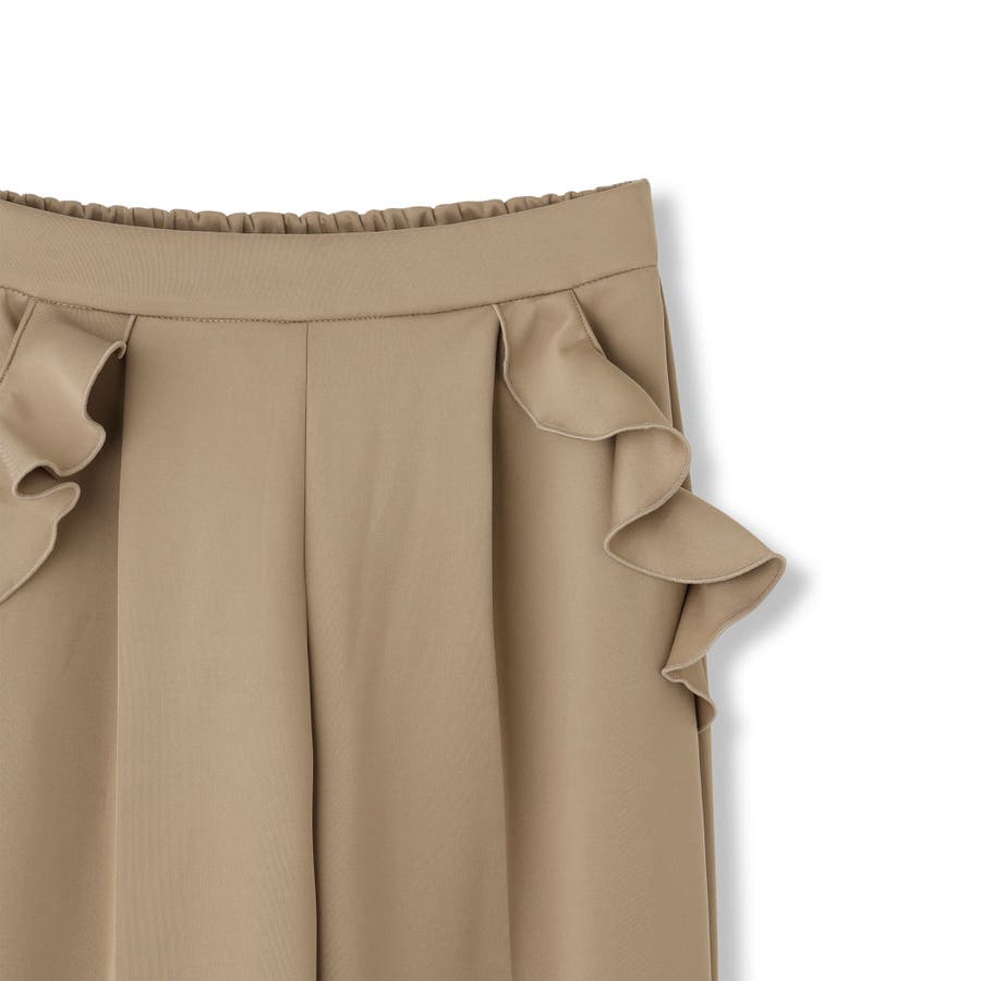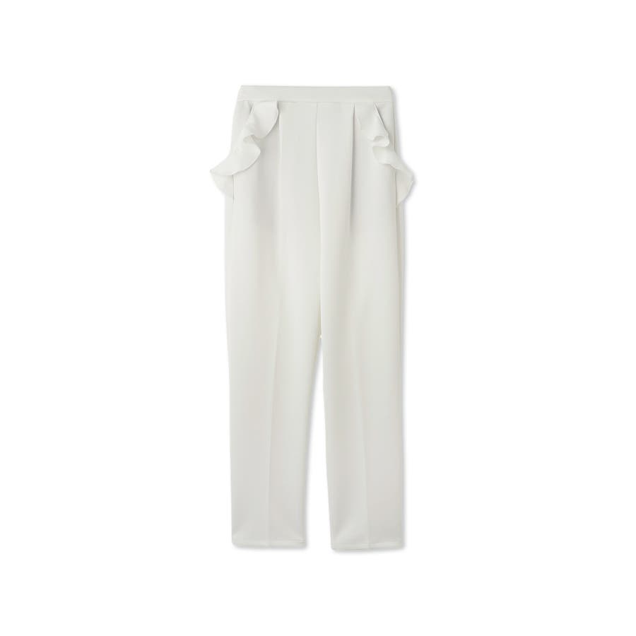 ダンボール素材を使用したポケット縁にラッフルフリルデザインを施したテーパードシルエットのパンツです。