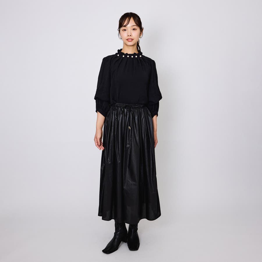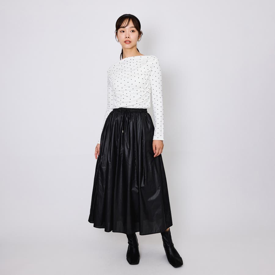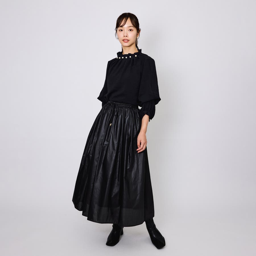 ライトな素材感だからこそ叶うウエストギャザーをふんだんに入れたフレアデザイン。