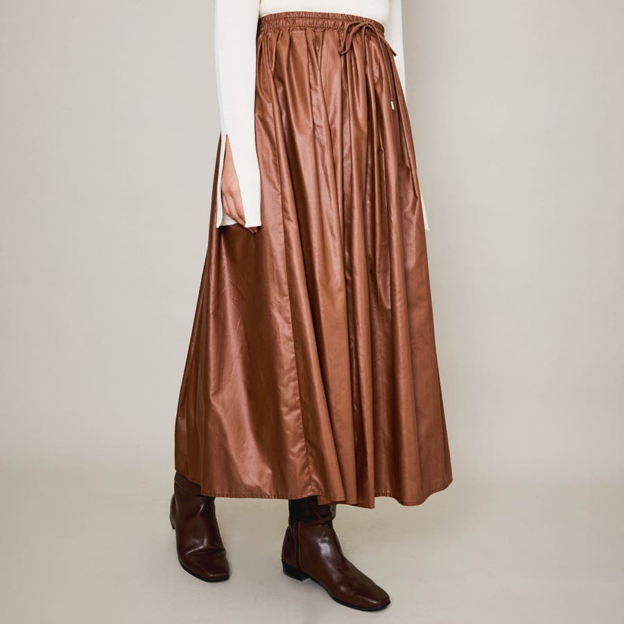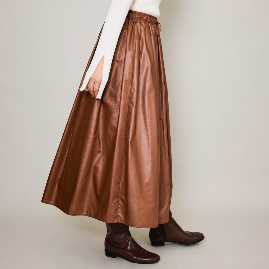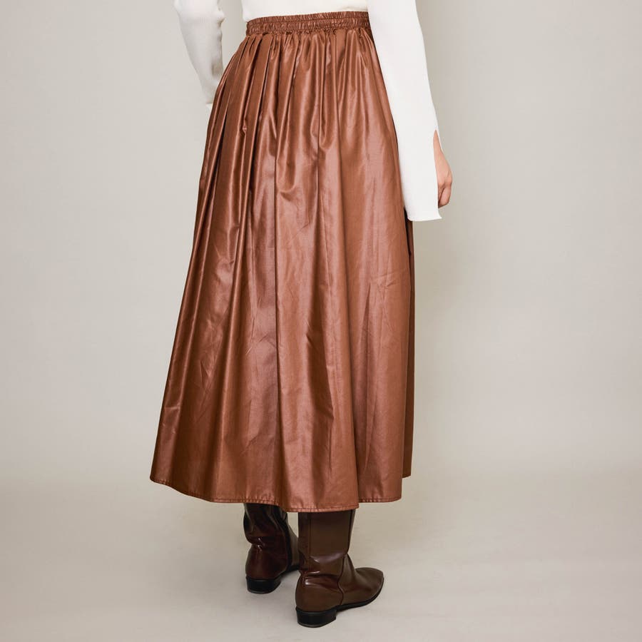 シアーレザー調フレアスカート≪手洗い可能≫