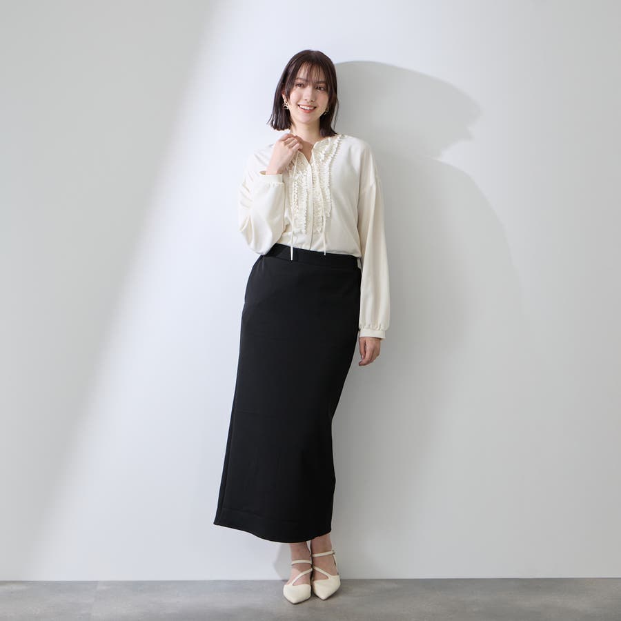 デザインはミニマルにそぎ落とし、レッグラインに寄り添うIラインで、コーディネートのバランスを整えたいときに重宝する一枚です。