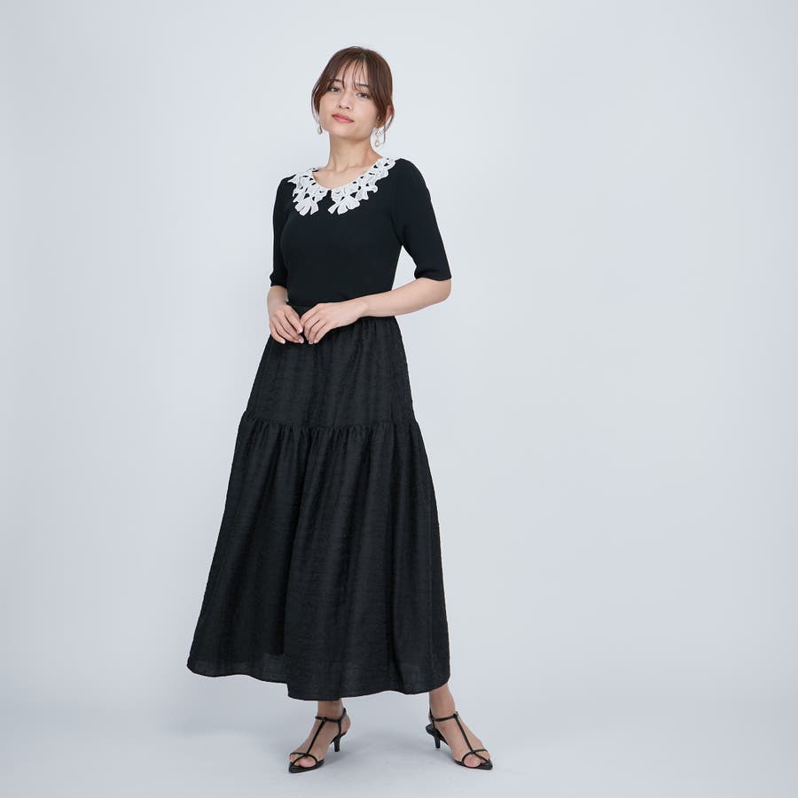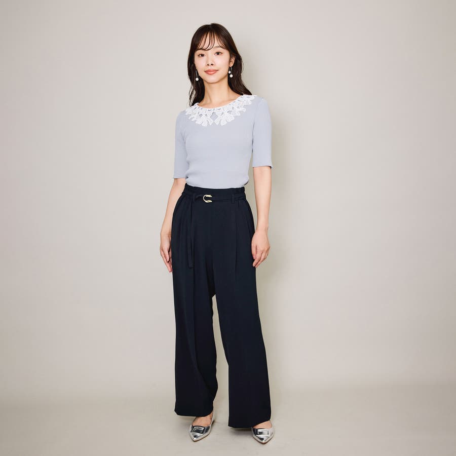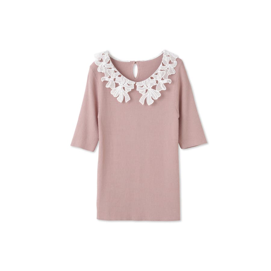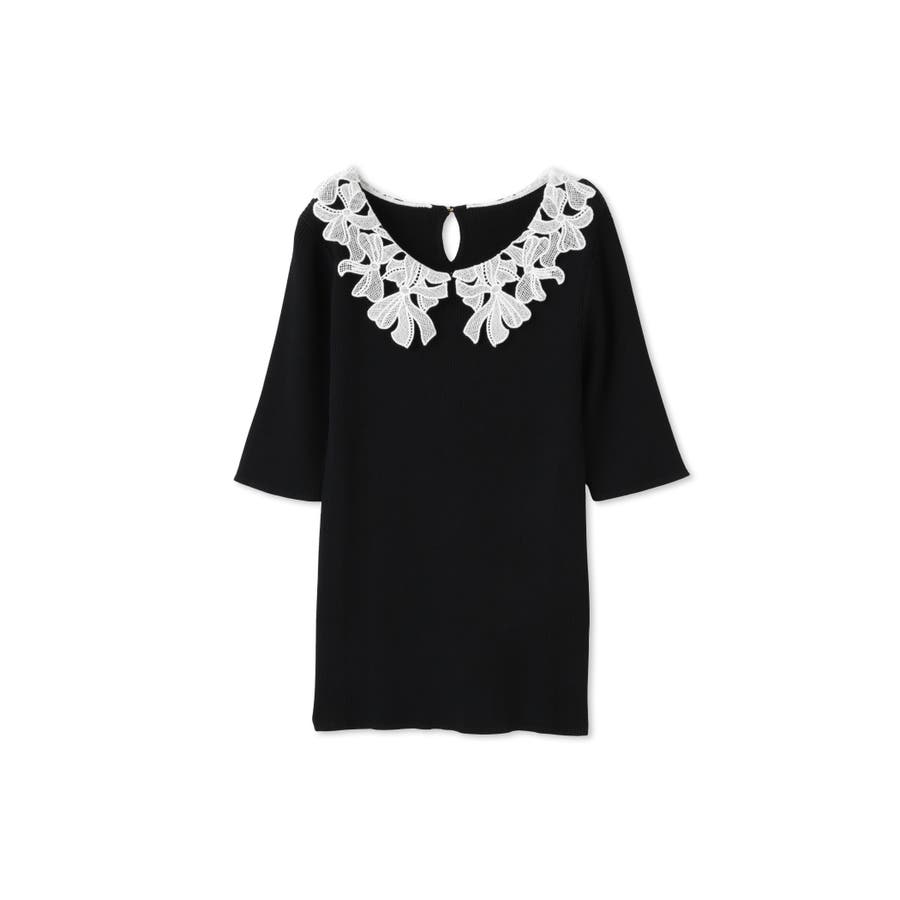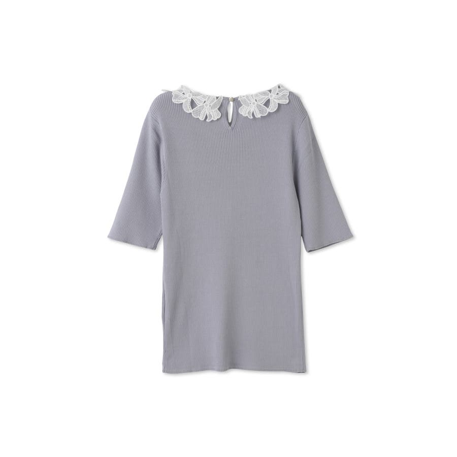 リボンをかたどったようなレースカラーが印象的なハイゲージのニットトップスです。