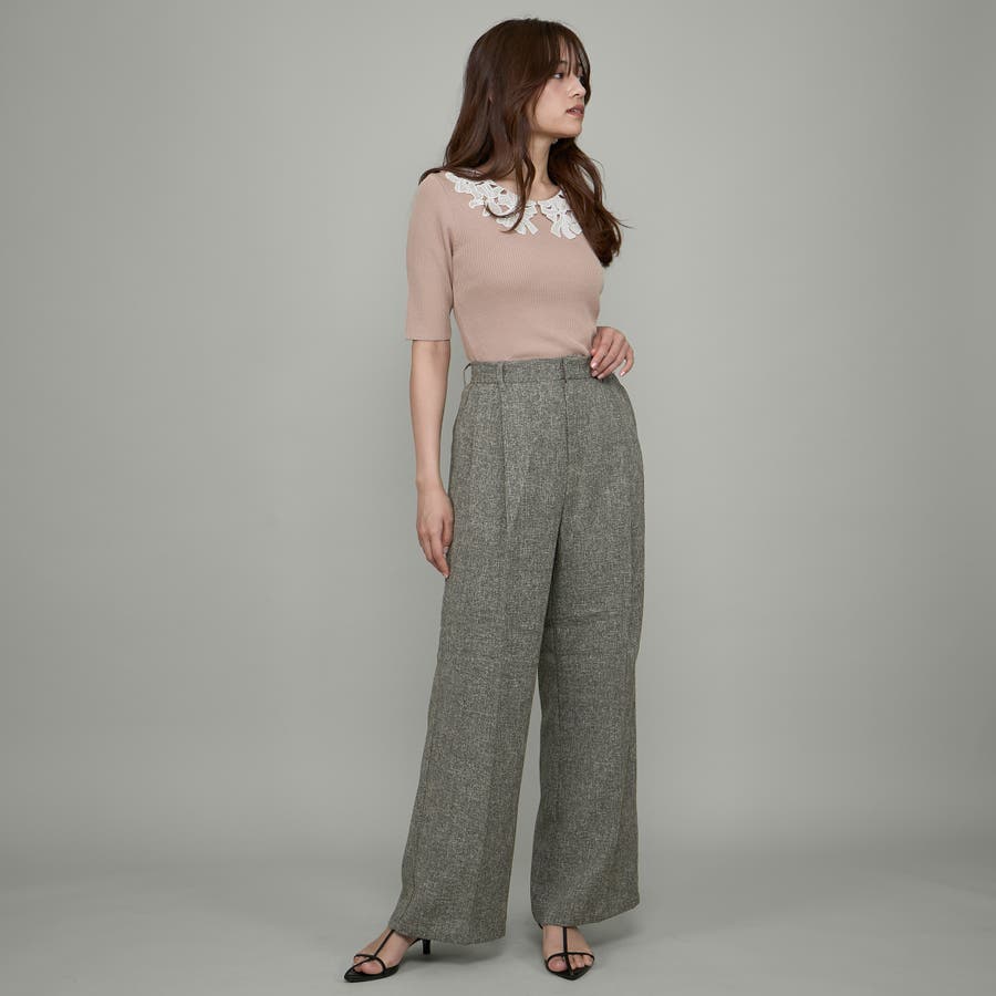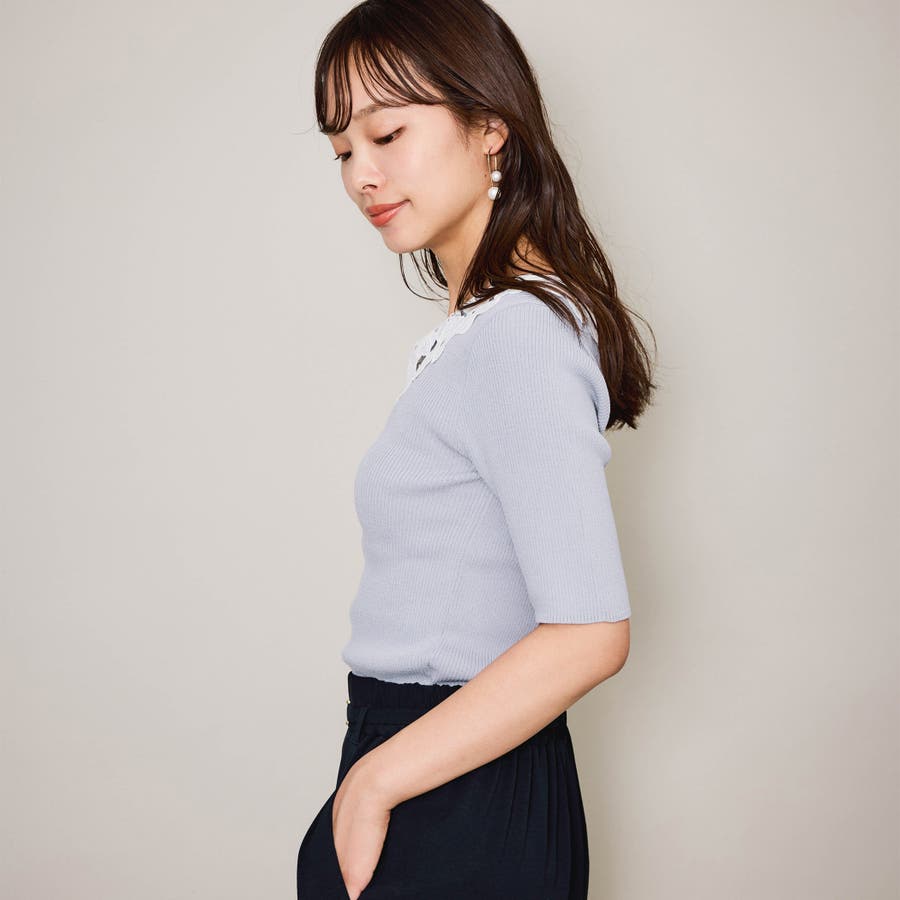 リボンレースカラーリブニット≪手洗い可能≫