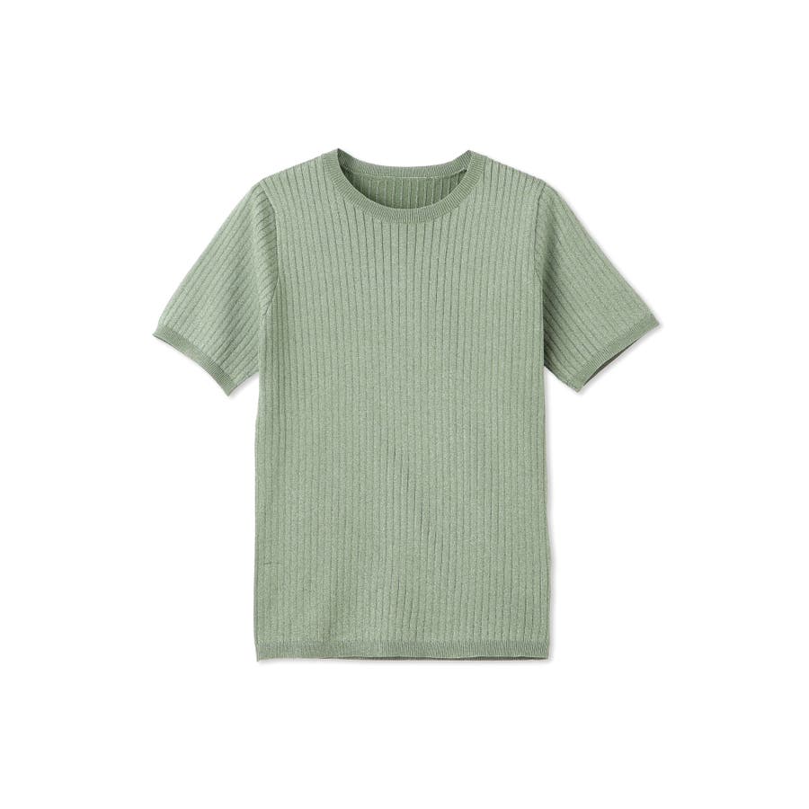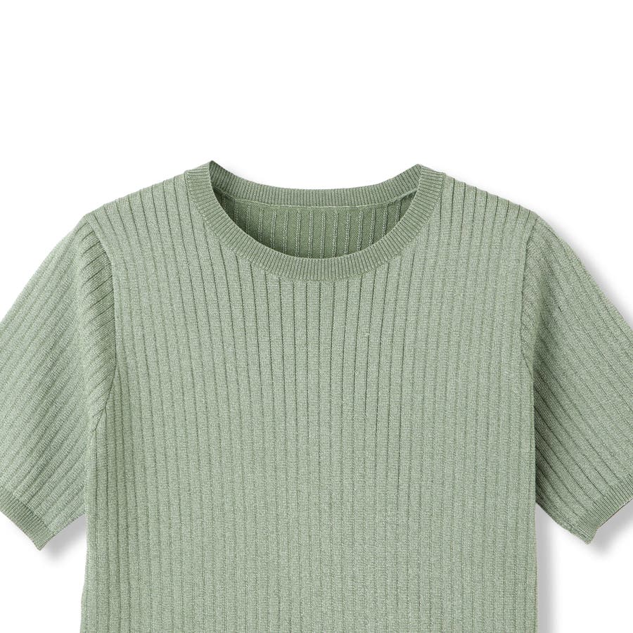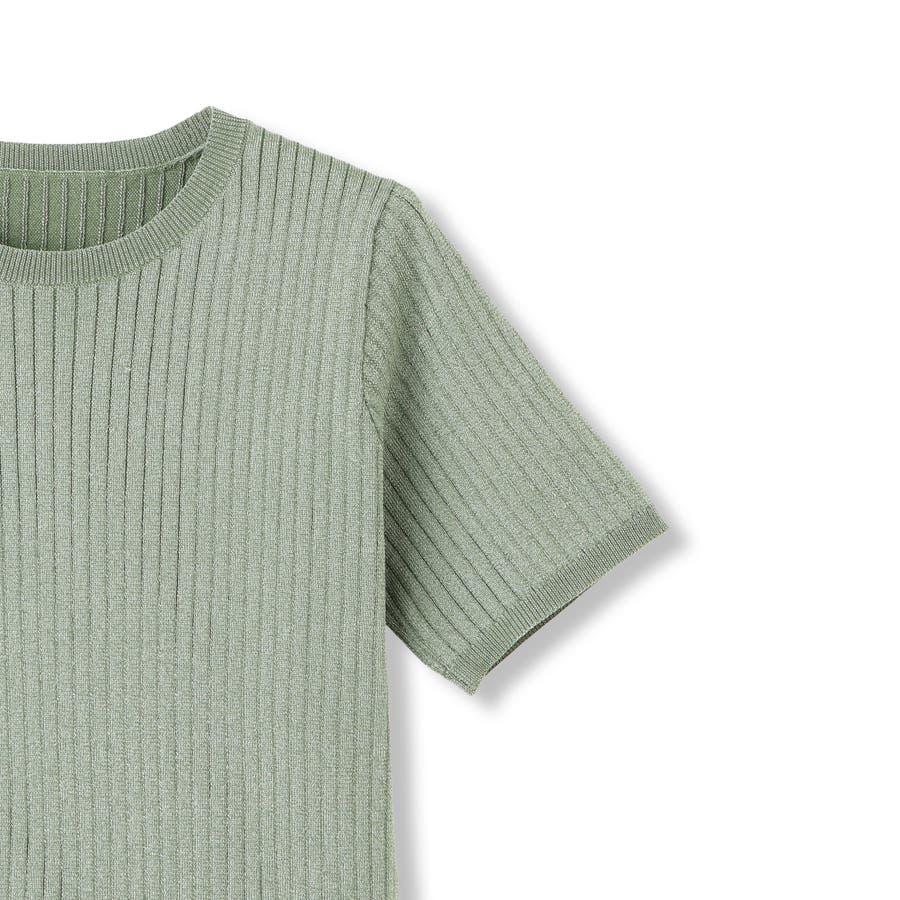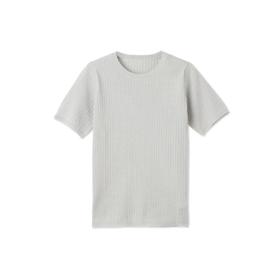 微光沢感のある糸を使用した半袖ニットトップスです。