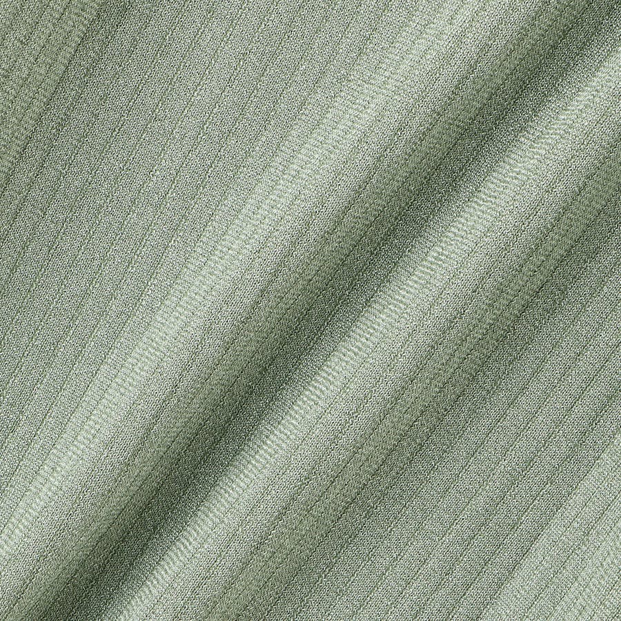 ワイドリブの編地なので、ボディラインにフィットしすぎず、肉感を拾いにくいのもポイント。