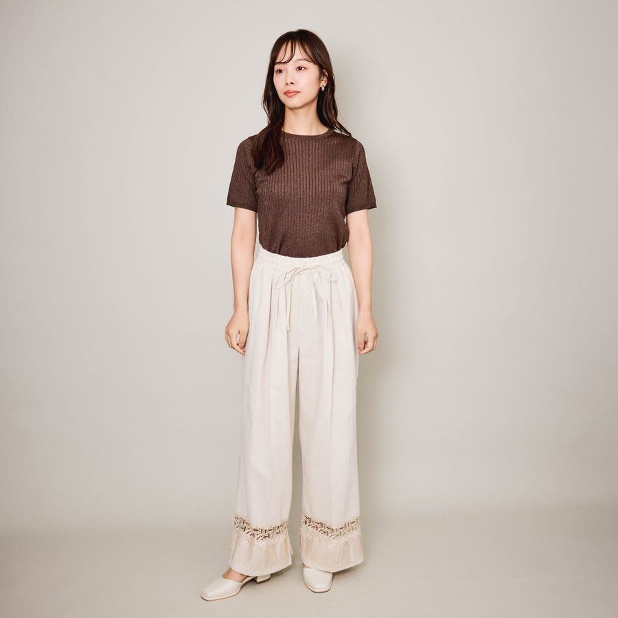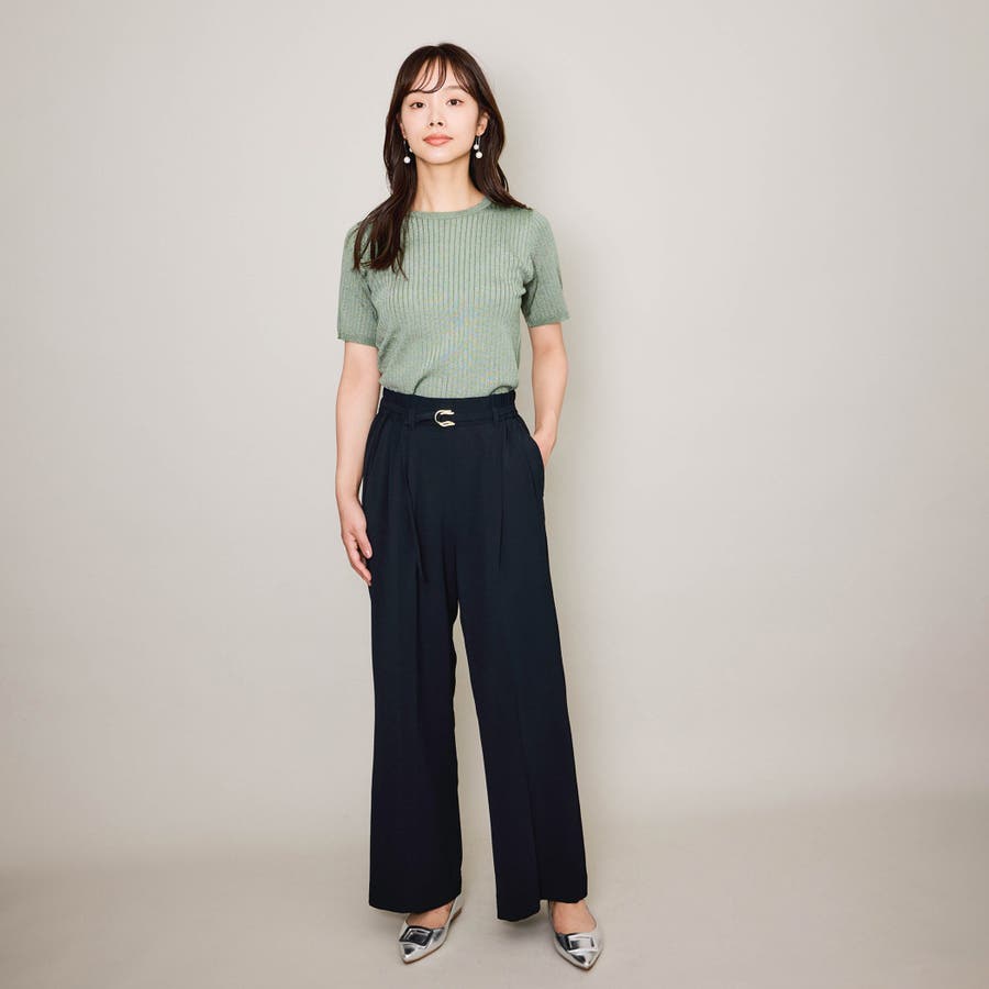 半袖のトップスも「ニット」になるだけで、新しいシーズンを感じさせるものに。
