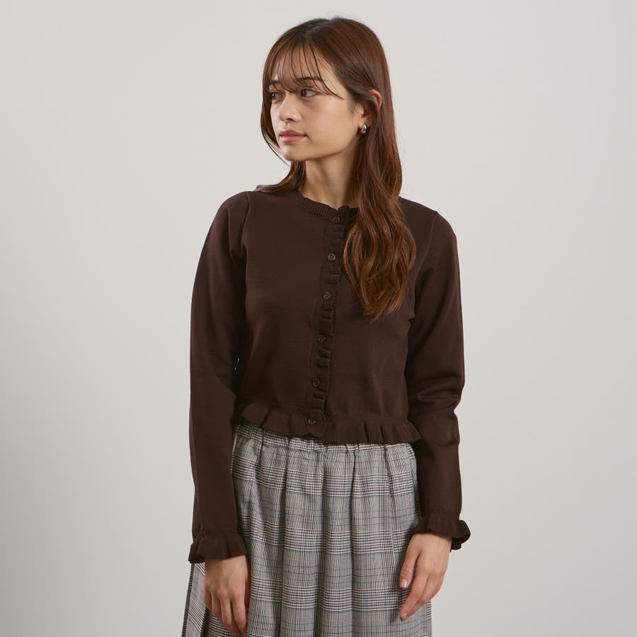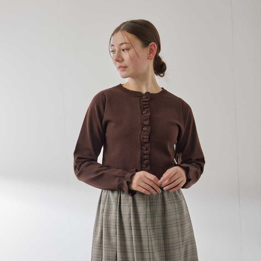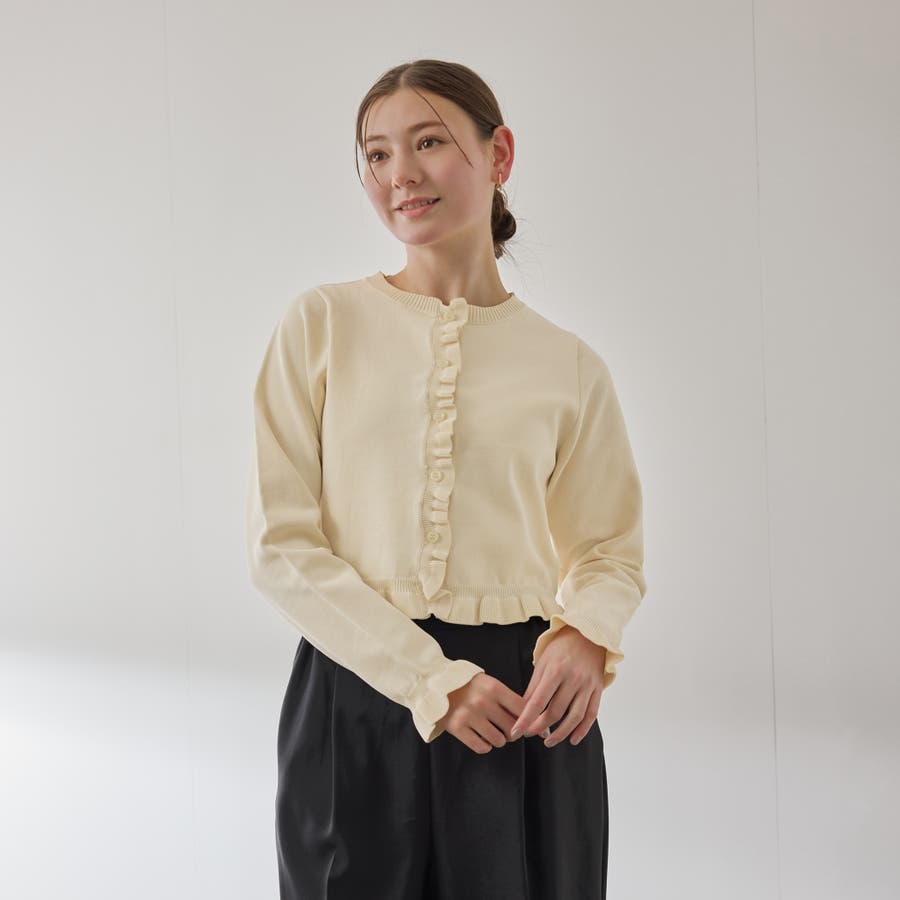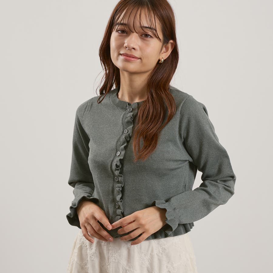 スポンディッシュニットフリルカーディガン≪手洗い可能≫