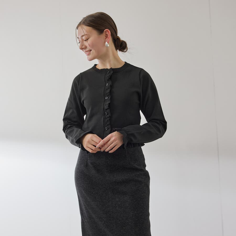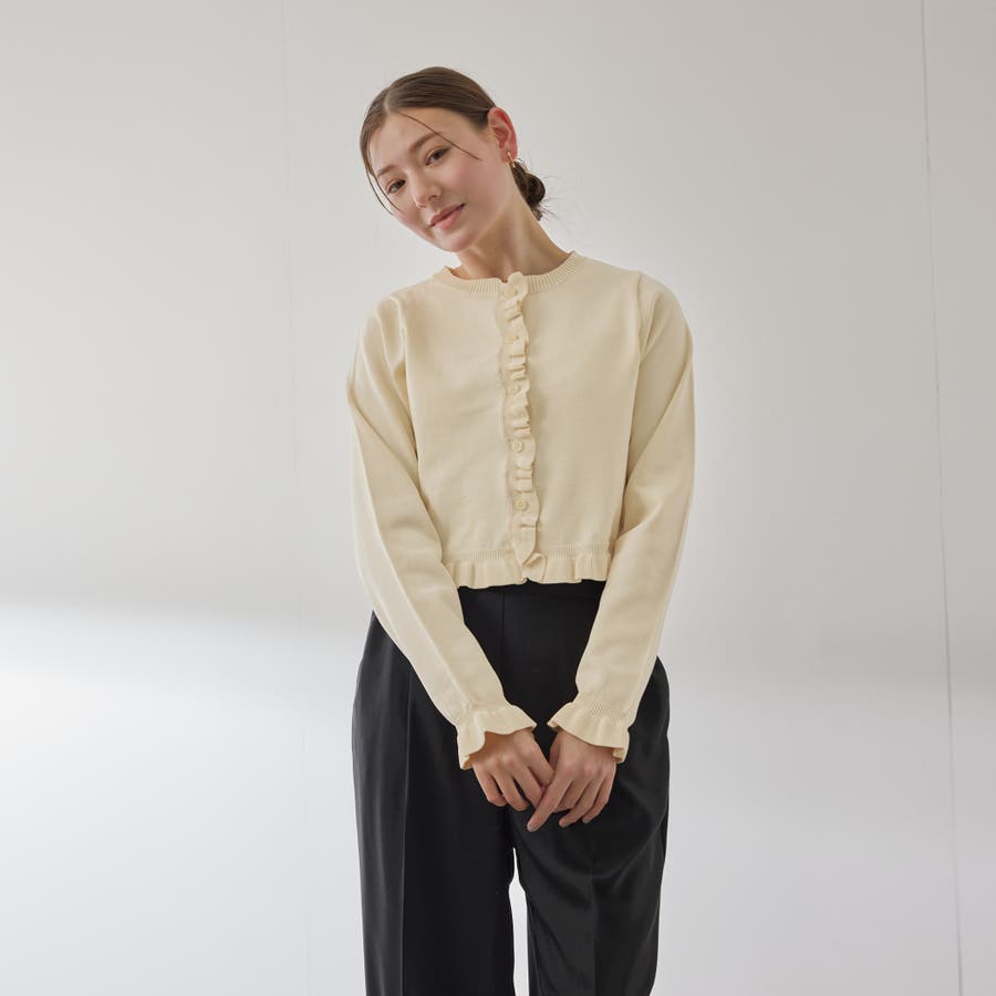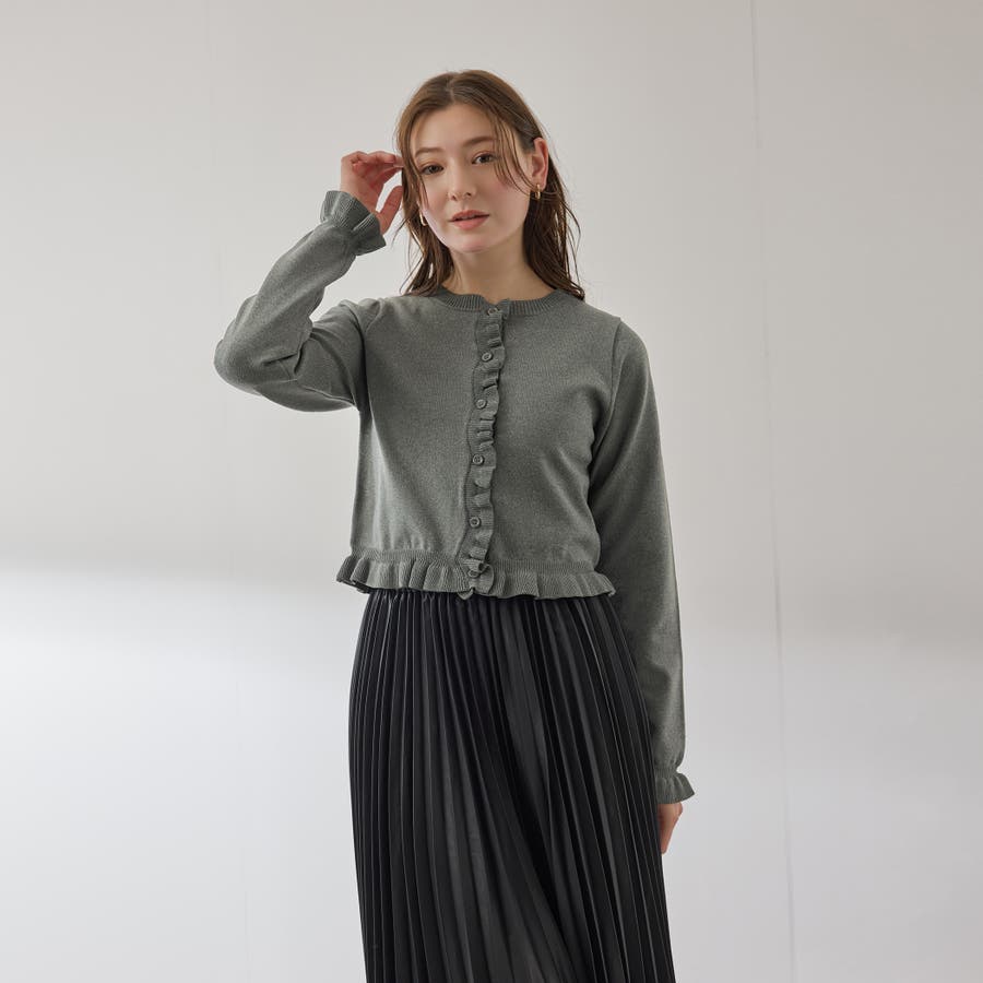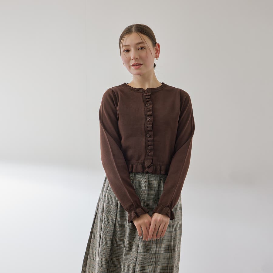 スポンディッシュニットフリルカーディガン≪手洗い可能≫