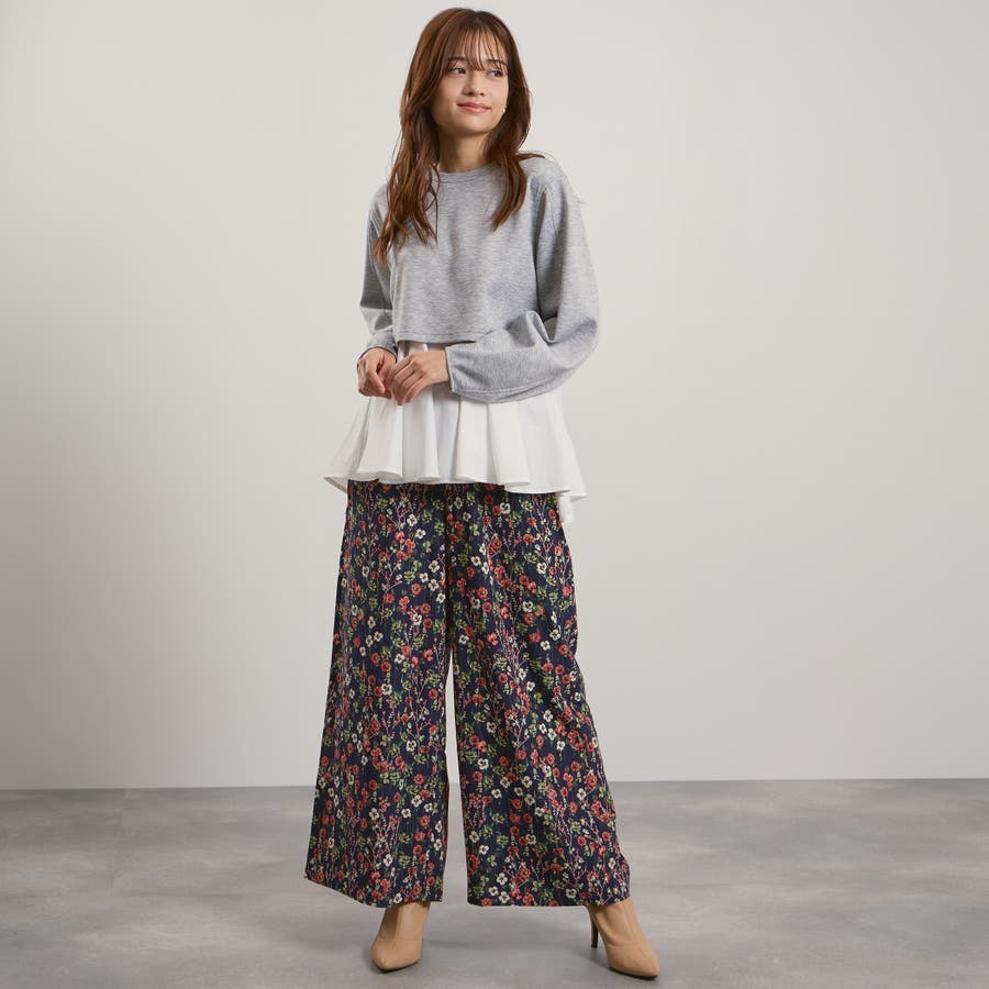 腰にかかる着丈なので、ワイドパンツやナローシルエットのスカートなどにあわせたコーディネートがおすすめです。
