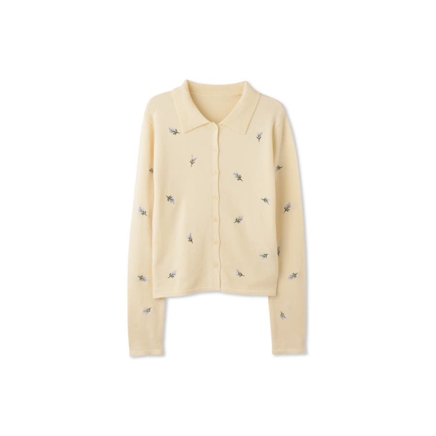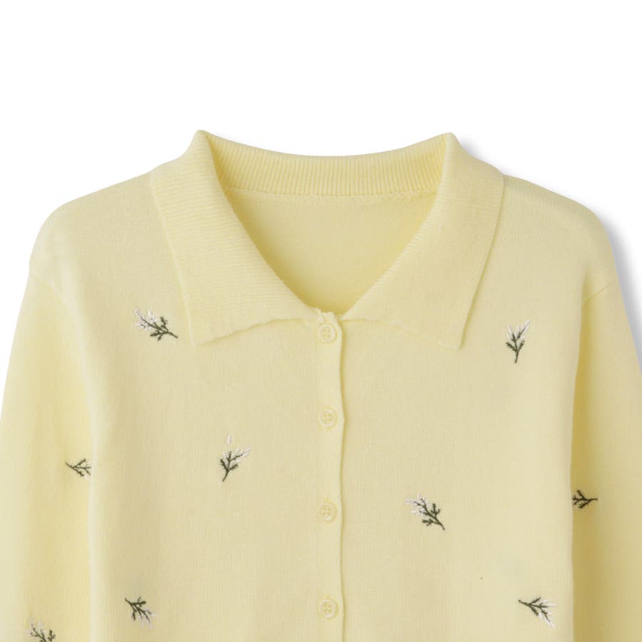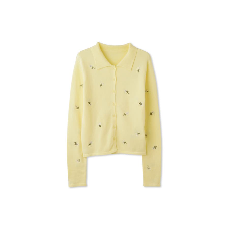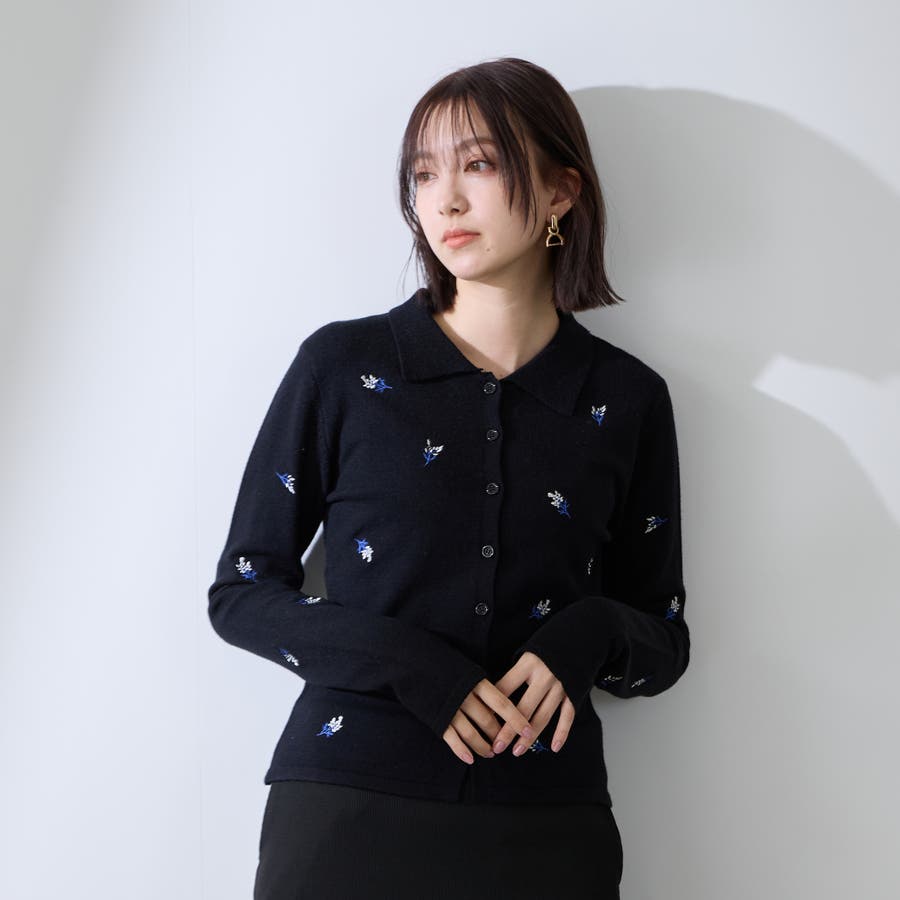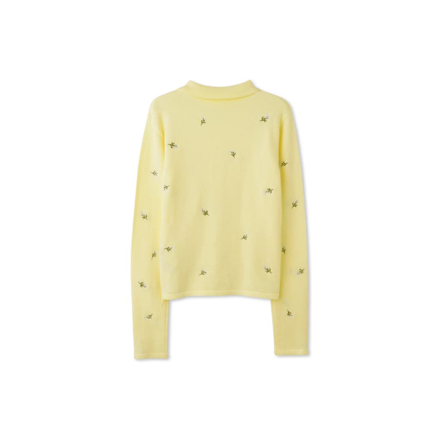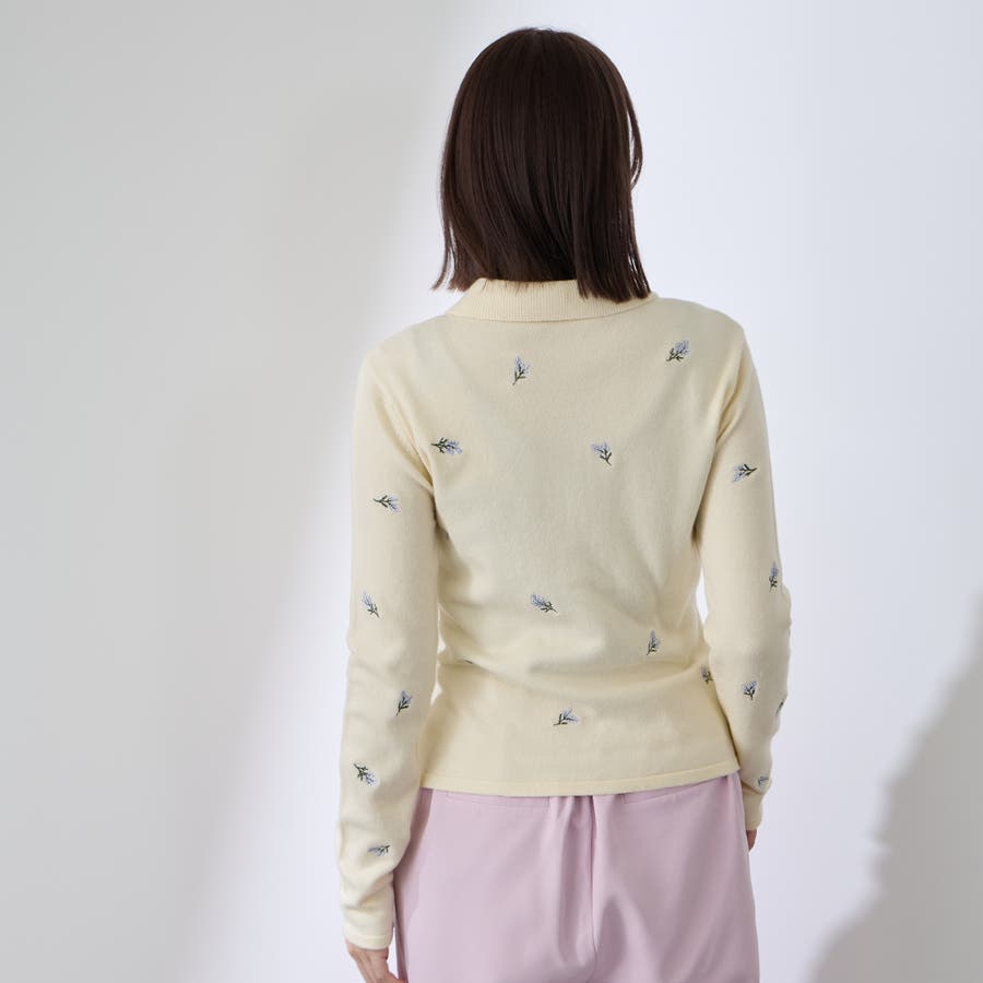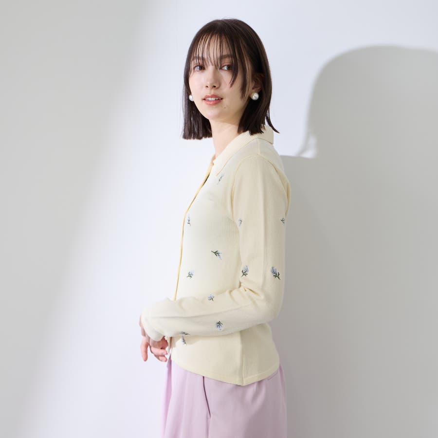 フラワー刺繍ポロニットトップス