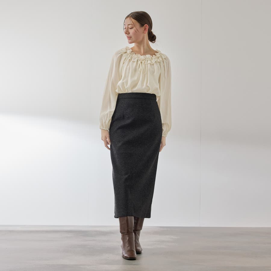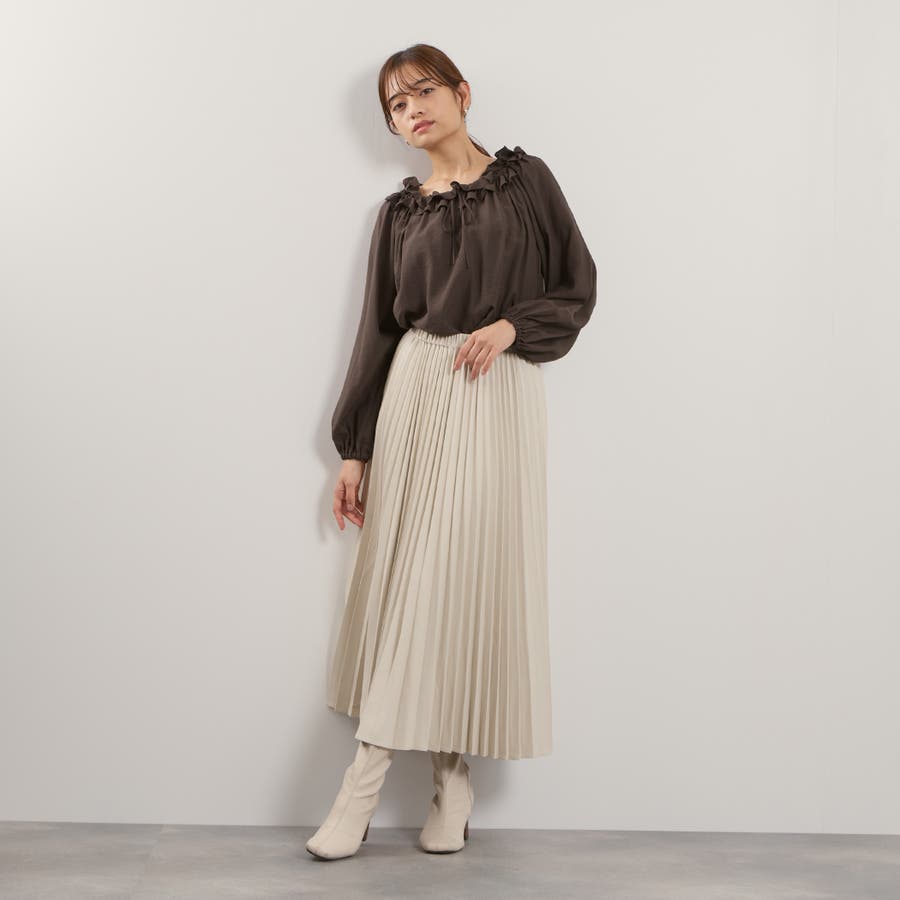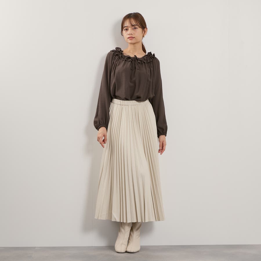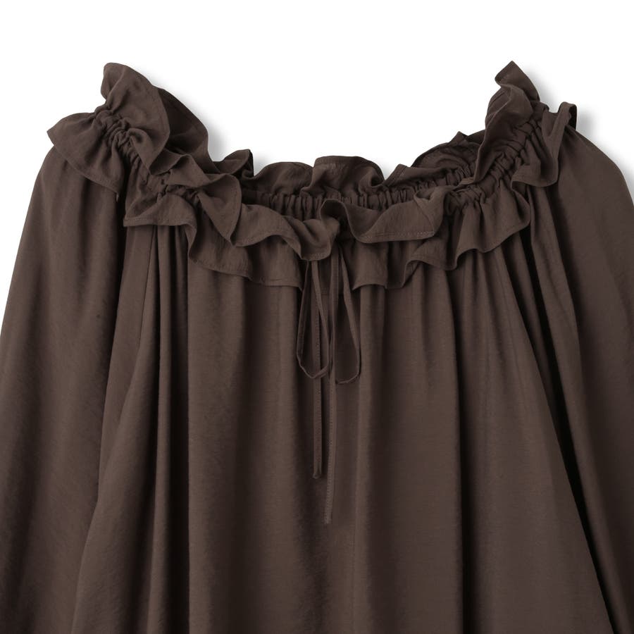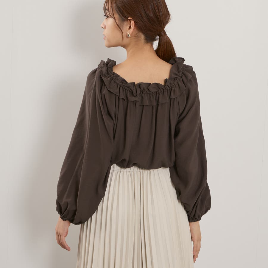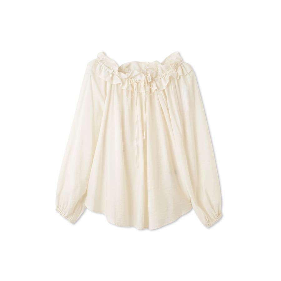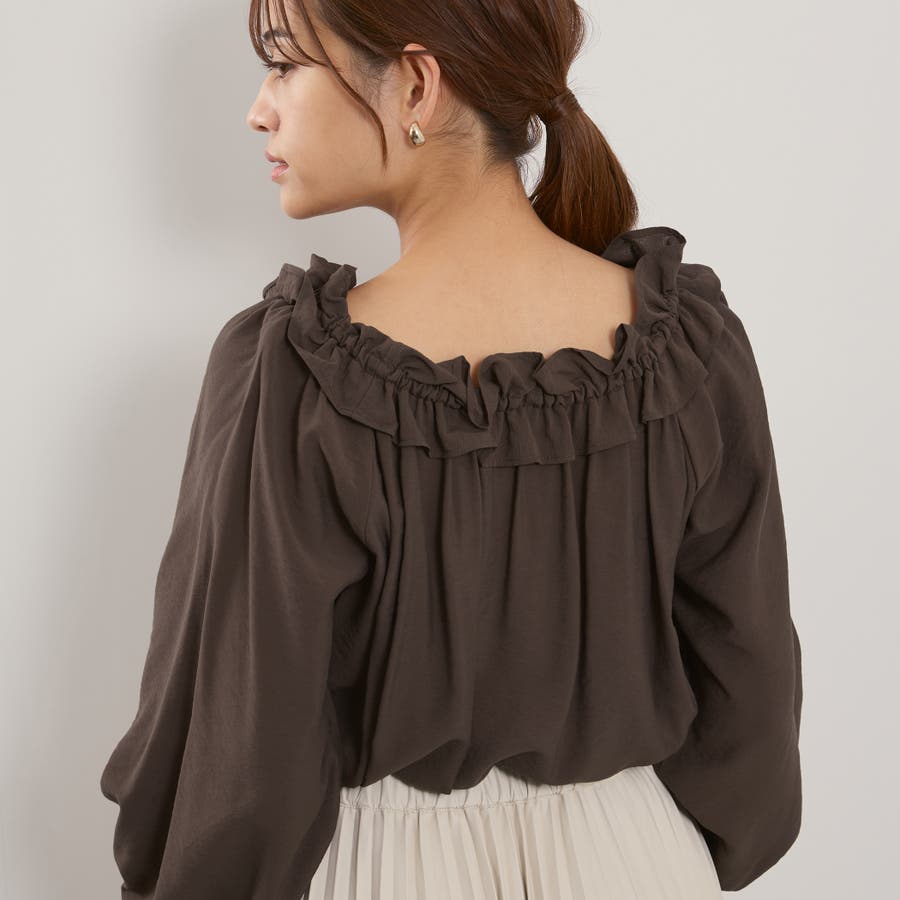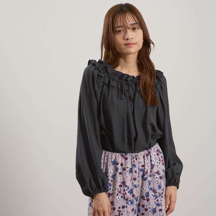 フリルの中央部分にナローリボンがついており、首元のニュアンスを変化させたご着用が可能になっています。
