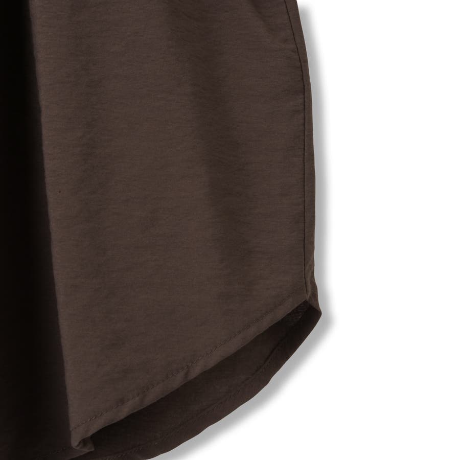 レーヨンとナイロンを混紡した素材に、ナチュラルな表情、風合いを付与する加工を施したテキスタイルを使用しています。