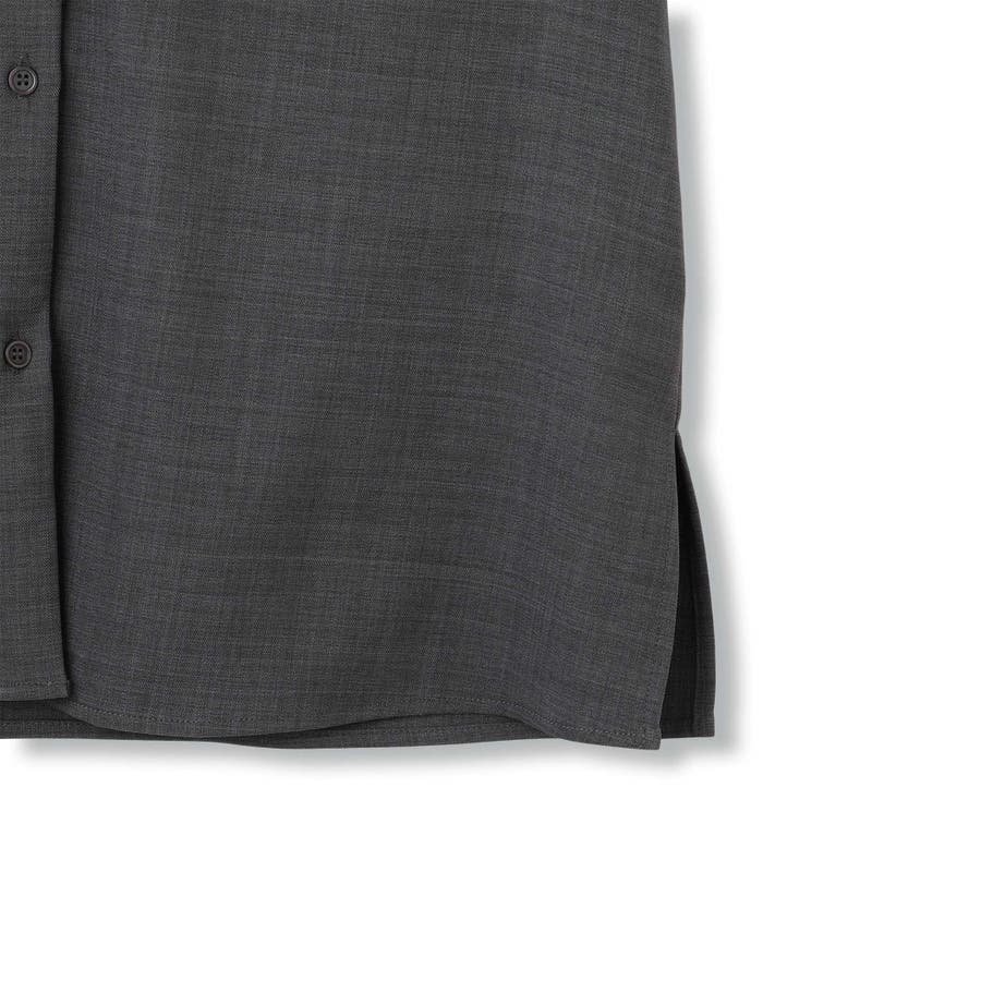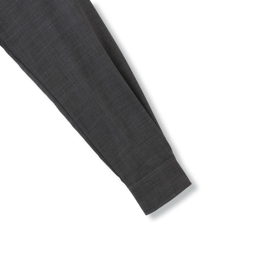 さらりとした肌触りで軽い着心地ときちんとしたハリ・コシが共存する、上品で高見えするウールトロピカルのような質感の合繊素材を使用しています。