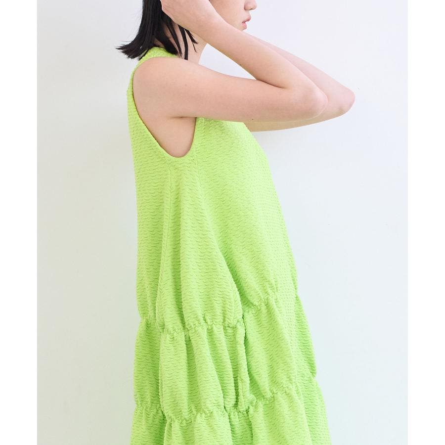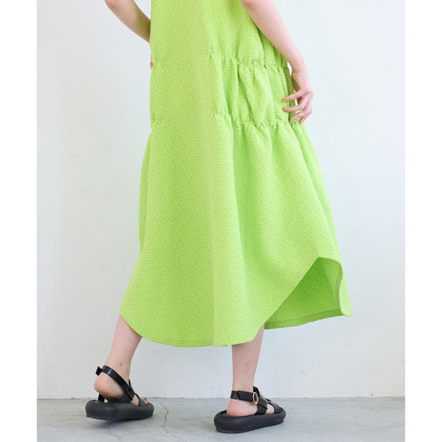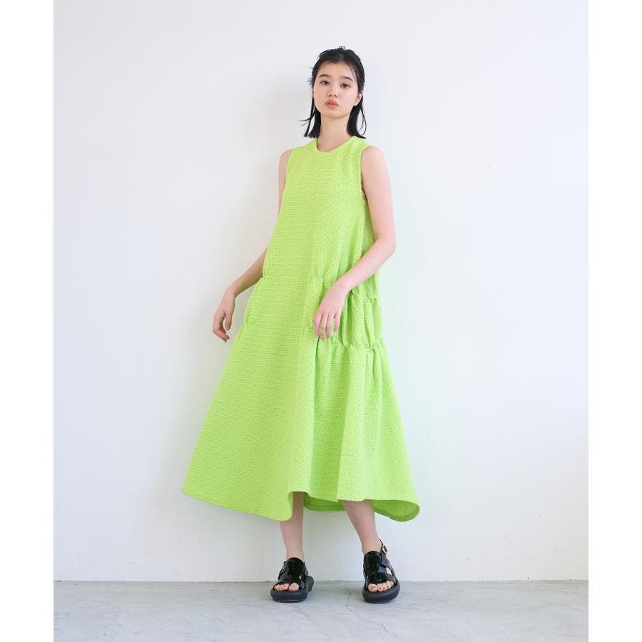 】ポップな色味と素材が目を惹く!ふくれジャカードニットワンピース
