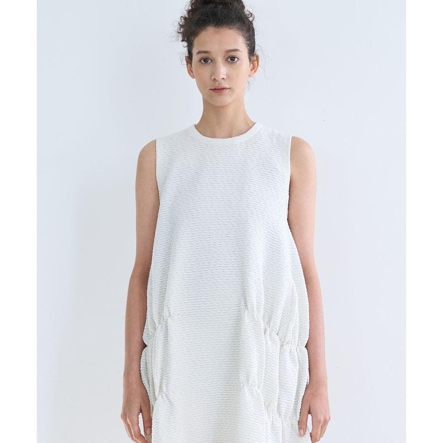 また、脇にギャザーが入っているのでヘムラインにも変化が出てさらに表情豊かに。