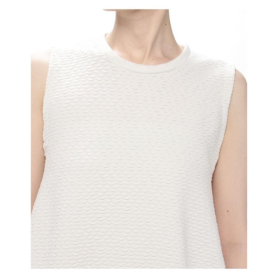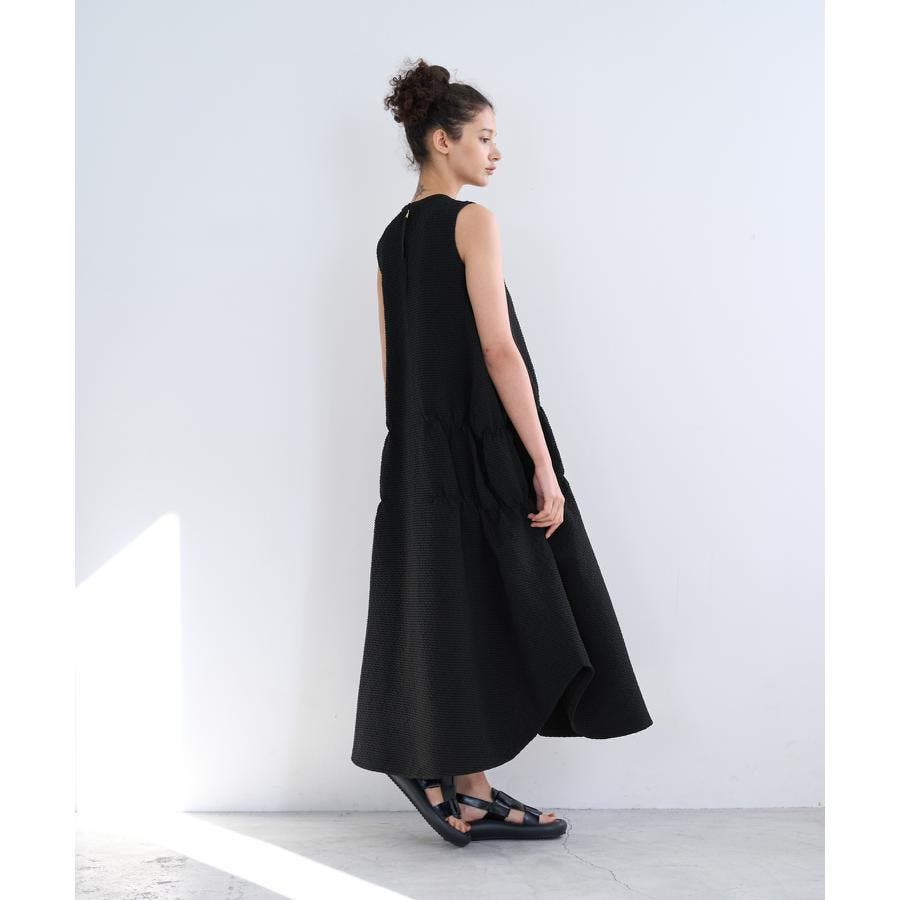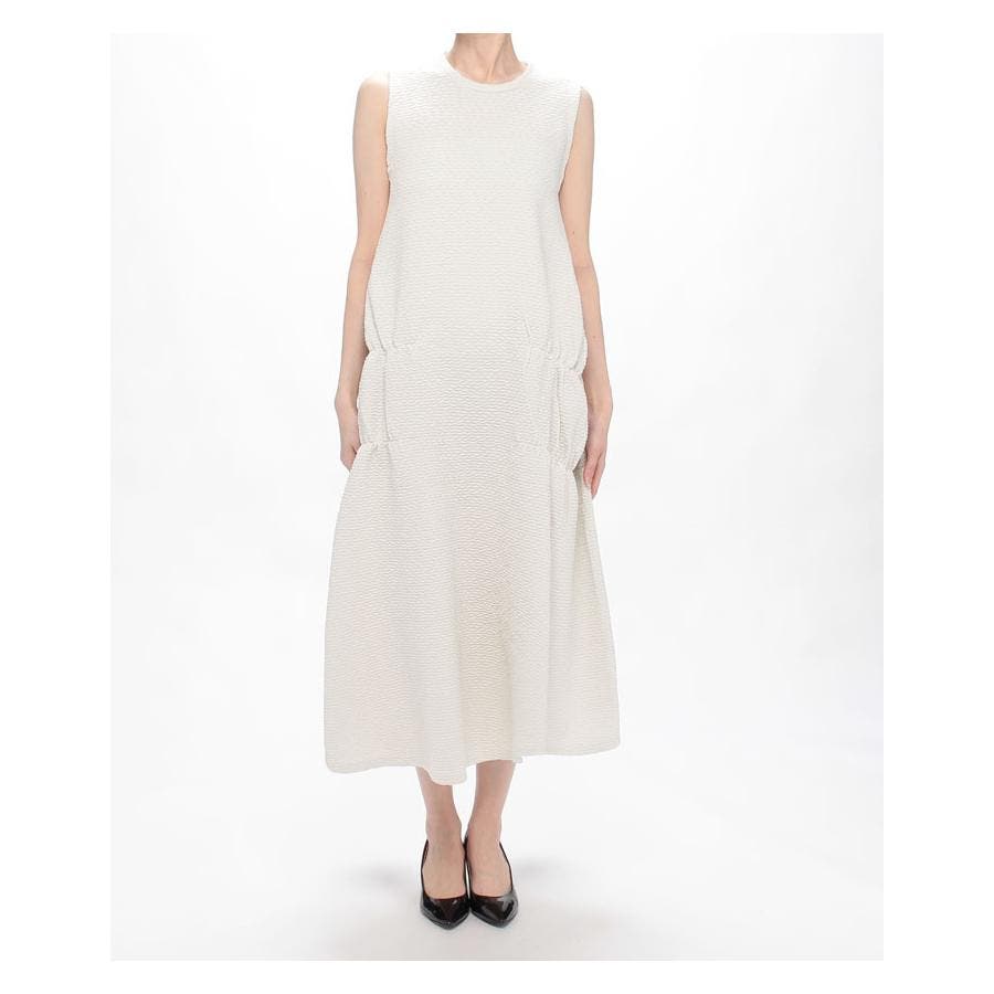 波のような細かいウェーブ柄をジャガード編みで表現したニットワンピース。