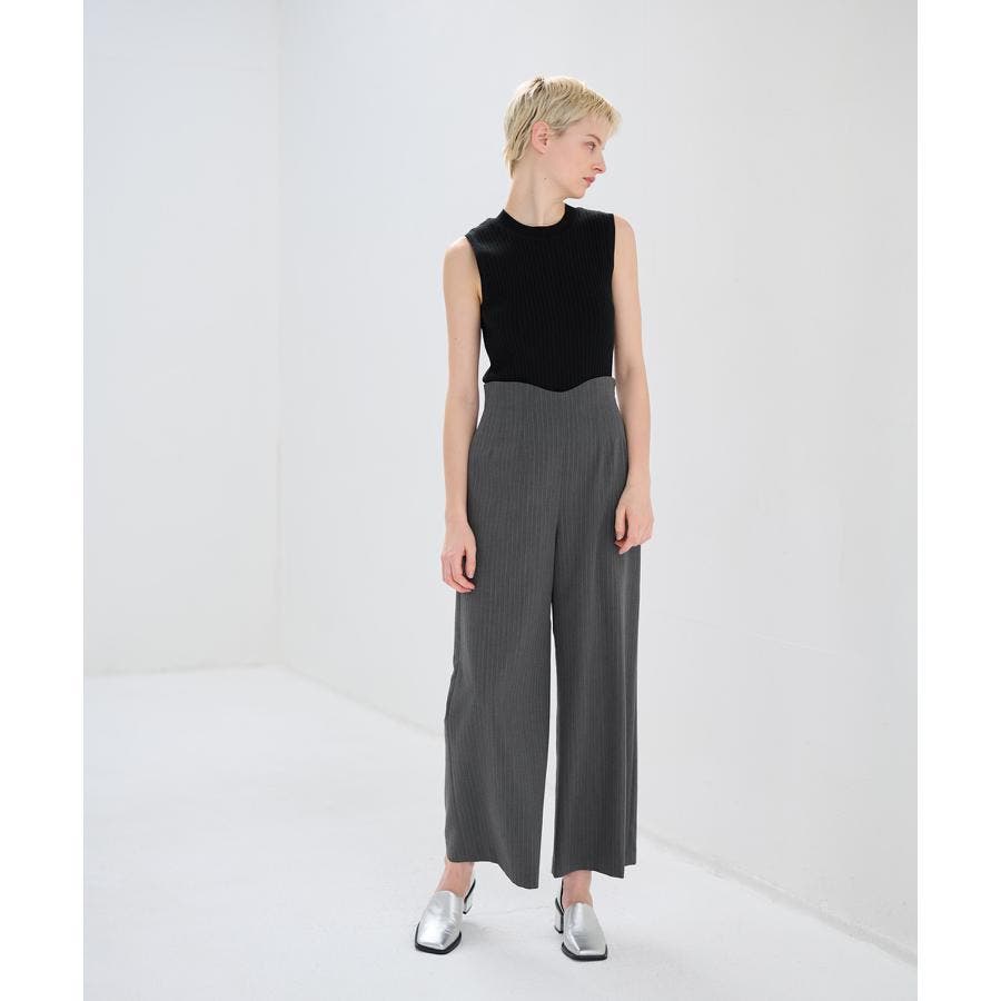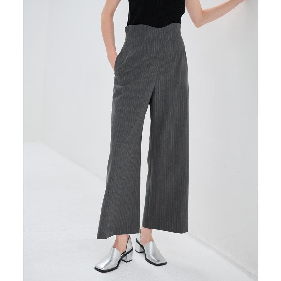 ベーシックアイテムでもハイウエスト×カーブラインでひとくせあるワイドパンツ。