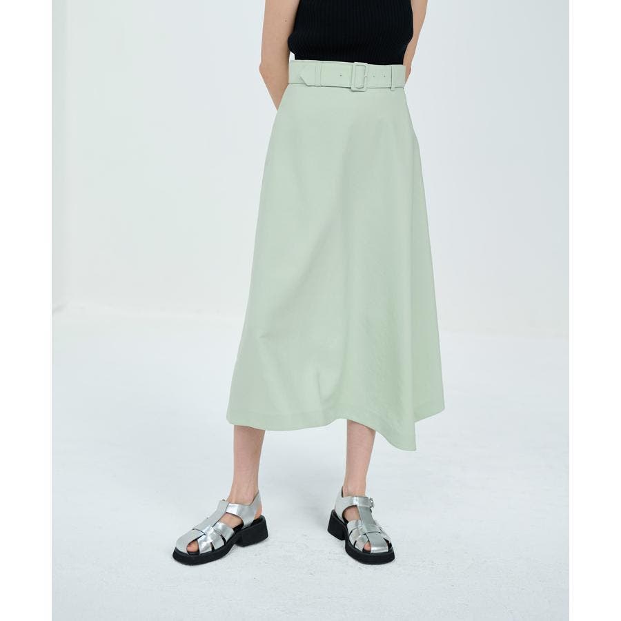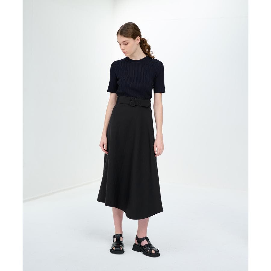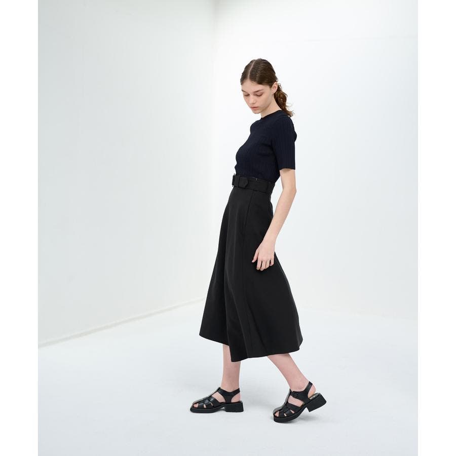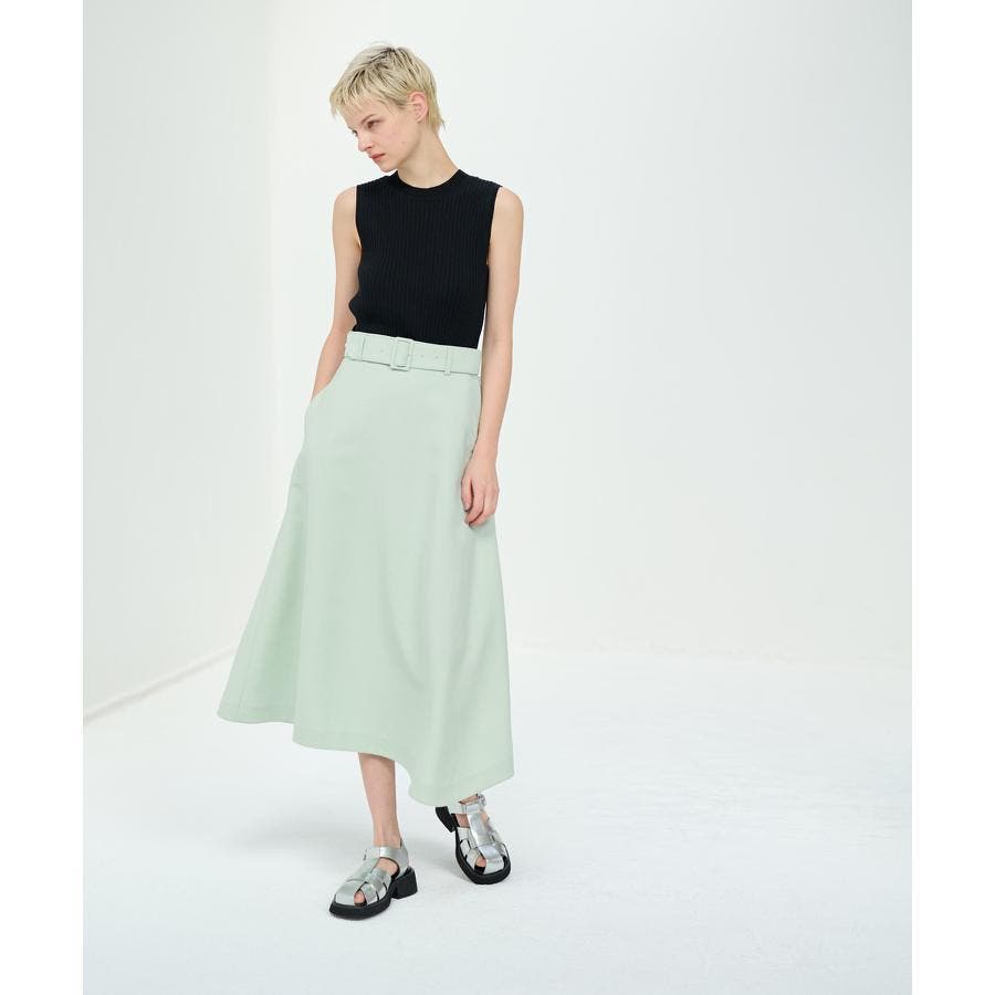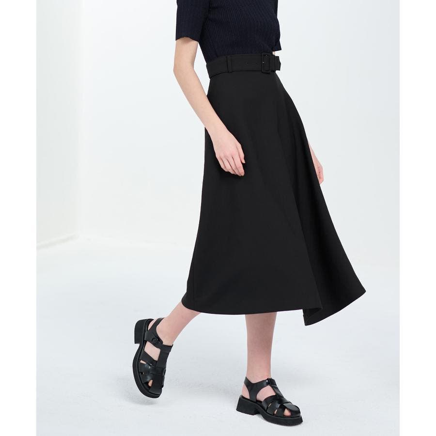 アシンメトリーなフレアシルエットがほんのりモードな印象を与えてくれるスカート。