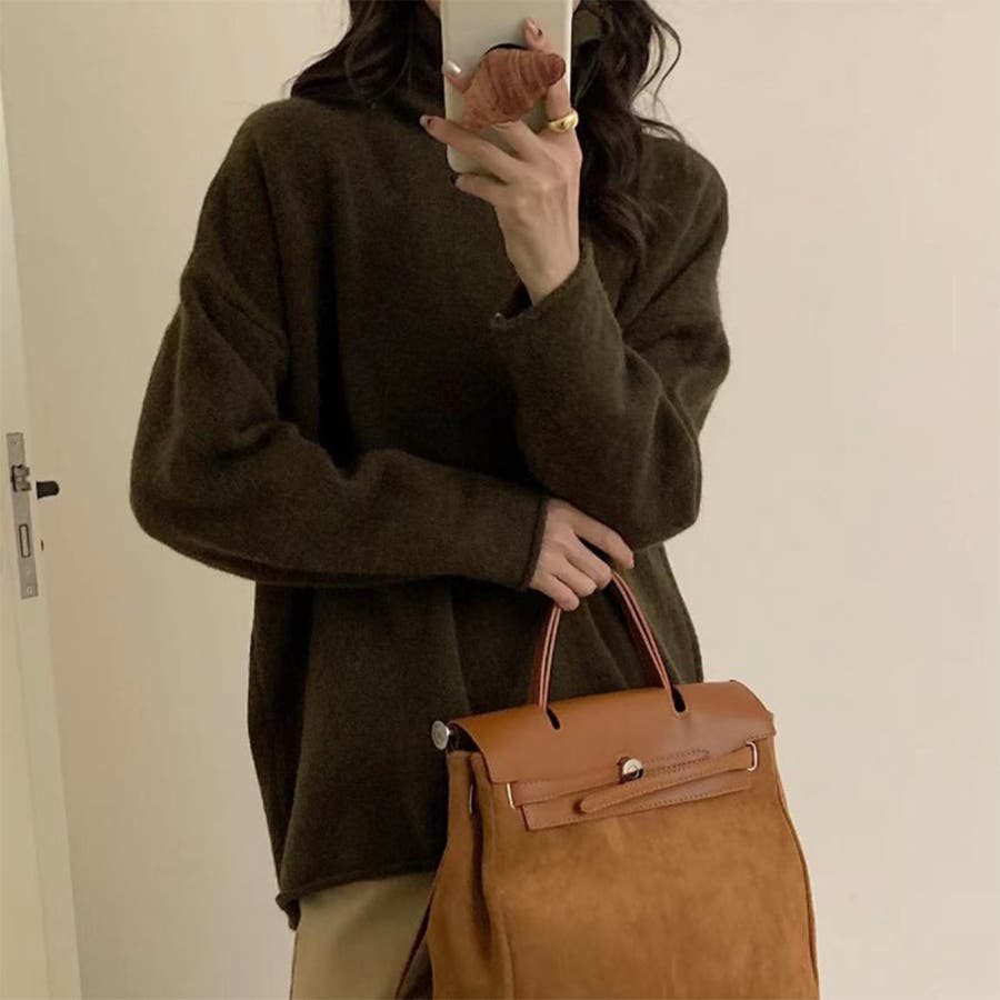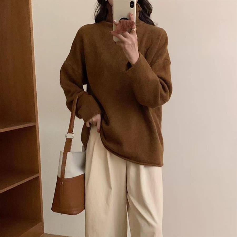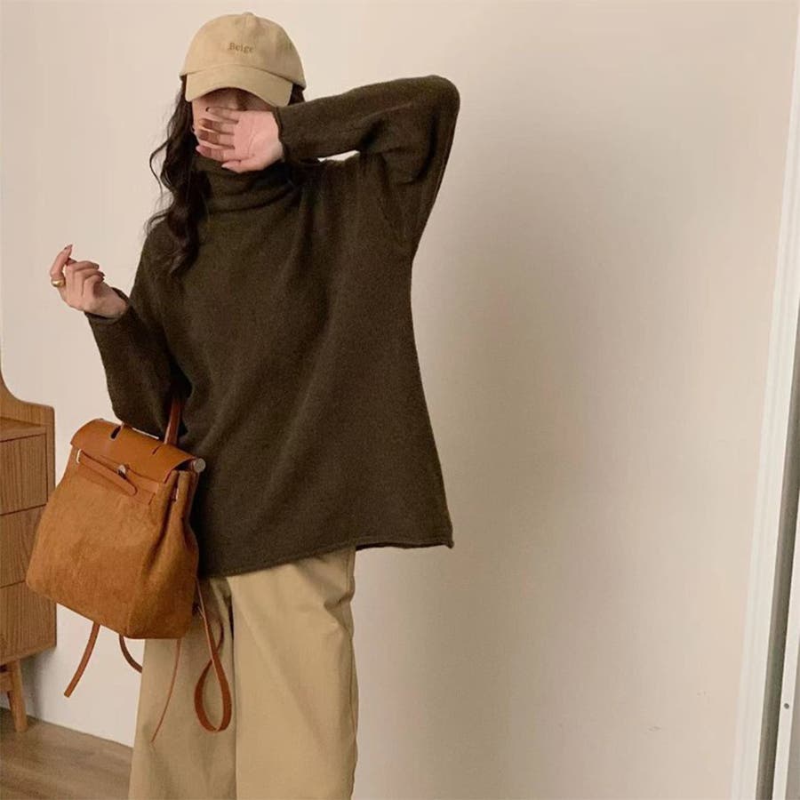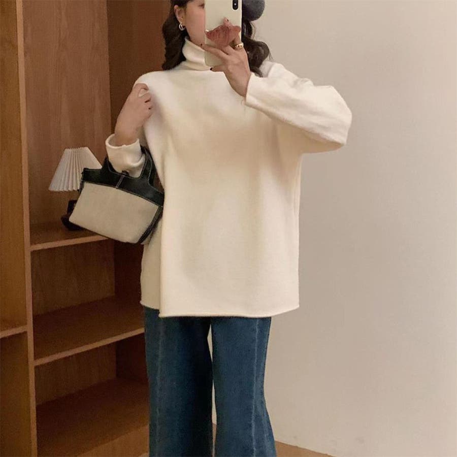 タートルネック ゆったり ニット トップス 韓国ファッション 4color