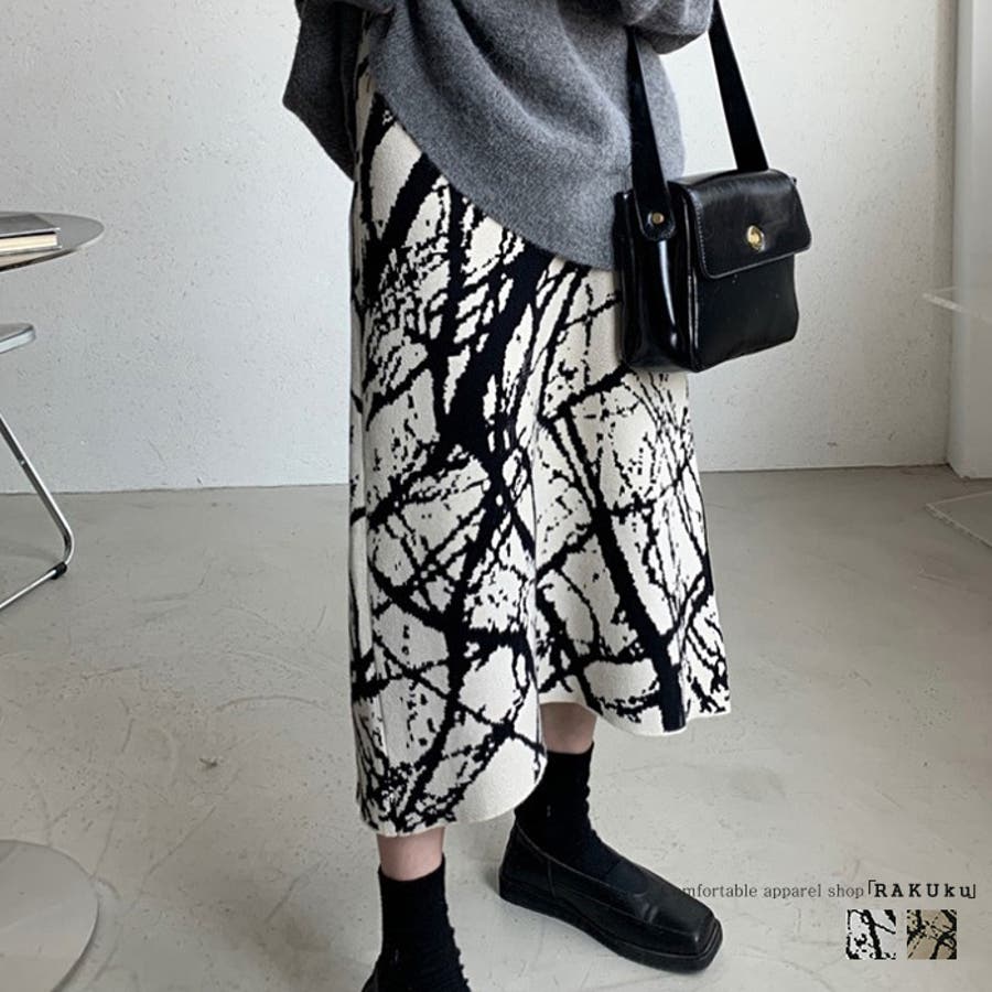総柄スカート スカート ボトムス フレアスカート ミモレ ミモレ丈 ロング ロング丈 フレア セミフレア Aライン ハイウエスト レディース オフィス 韓国風 韓国ファッション rakuku