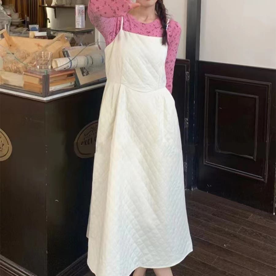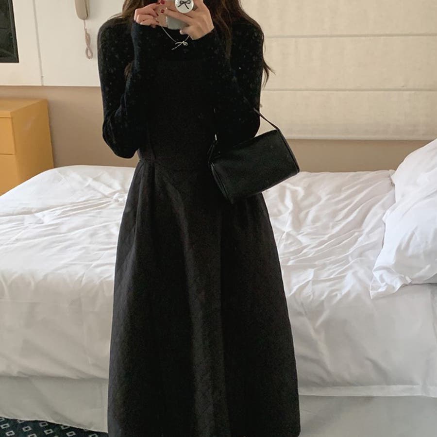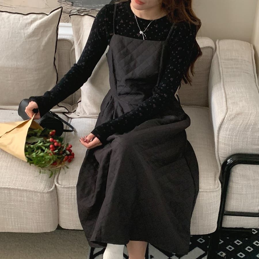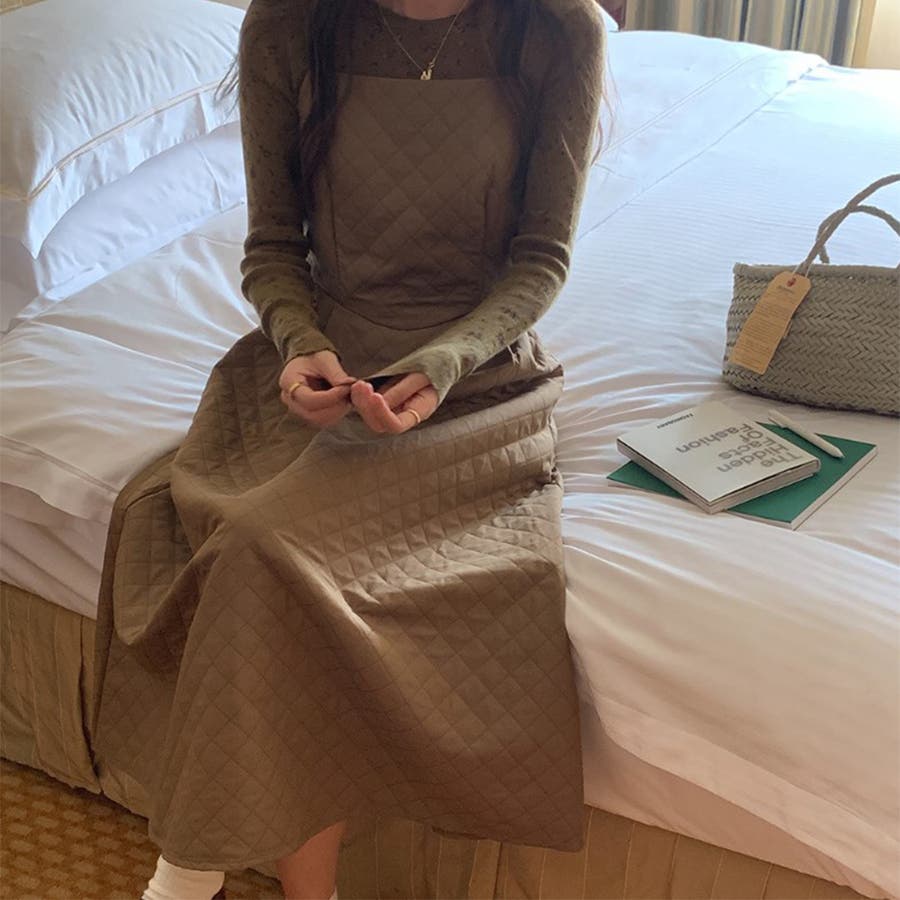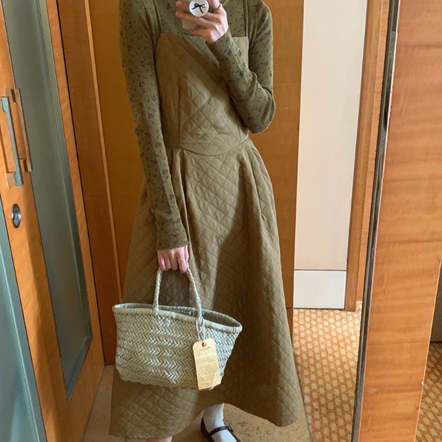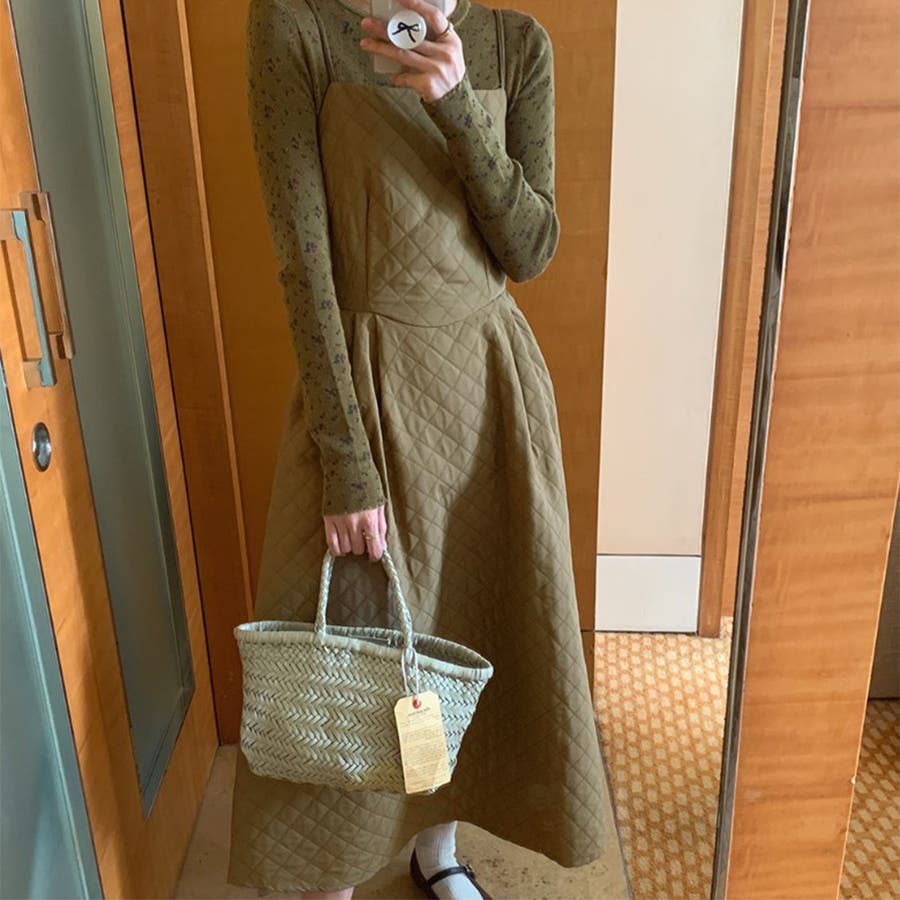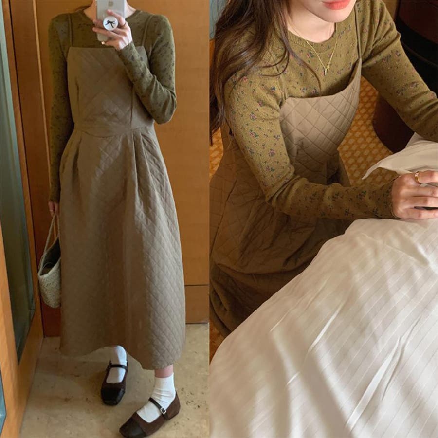 23aw3067 レーディス ワンピース ワンピ キルティングワンピース キャミワンピース 秋 冬 オータム レイヤード オフィスカジュアル 通勤 通学 デイリーコーデ 韓国風 韓国ファッション rakuku