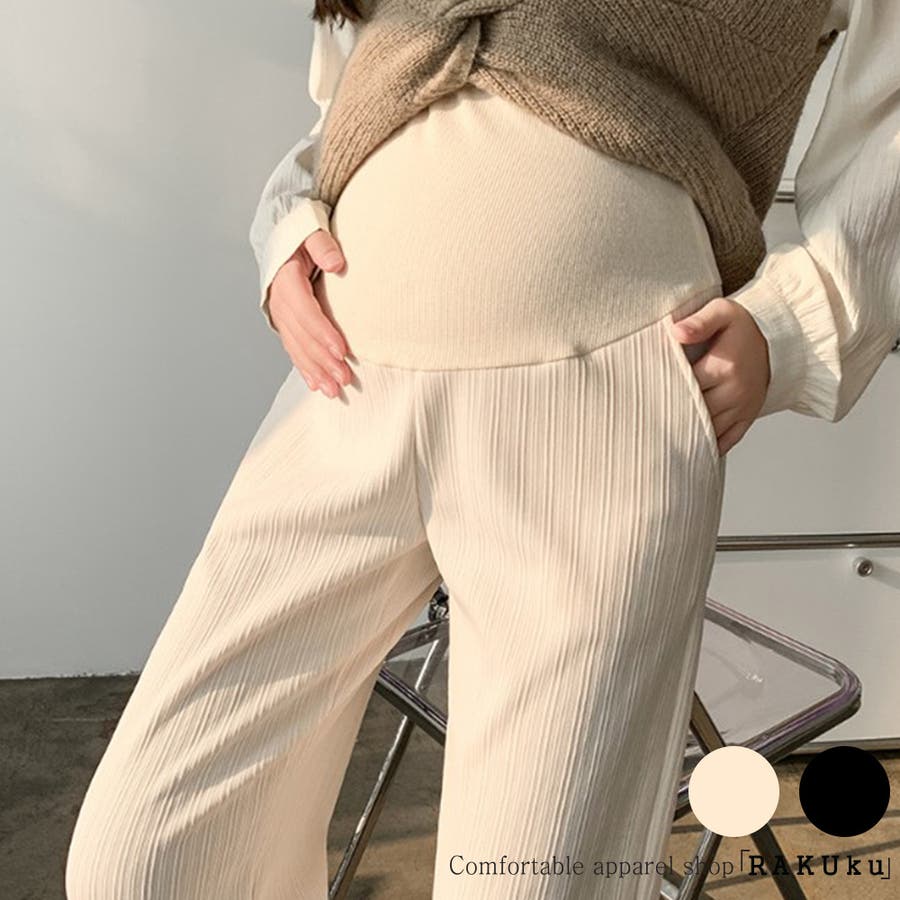 マタニティウェア マタニティパンツ 産前 産後 秋 冬 ワイドパンツ ウエストゴム 暖か 防寒 体型カバー 韓国風 韓国ファッション rakuku