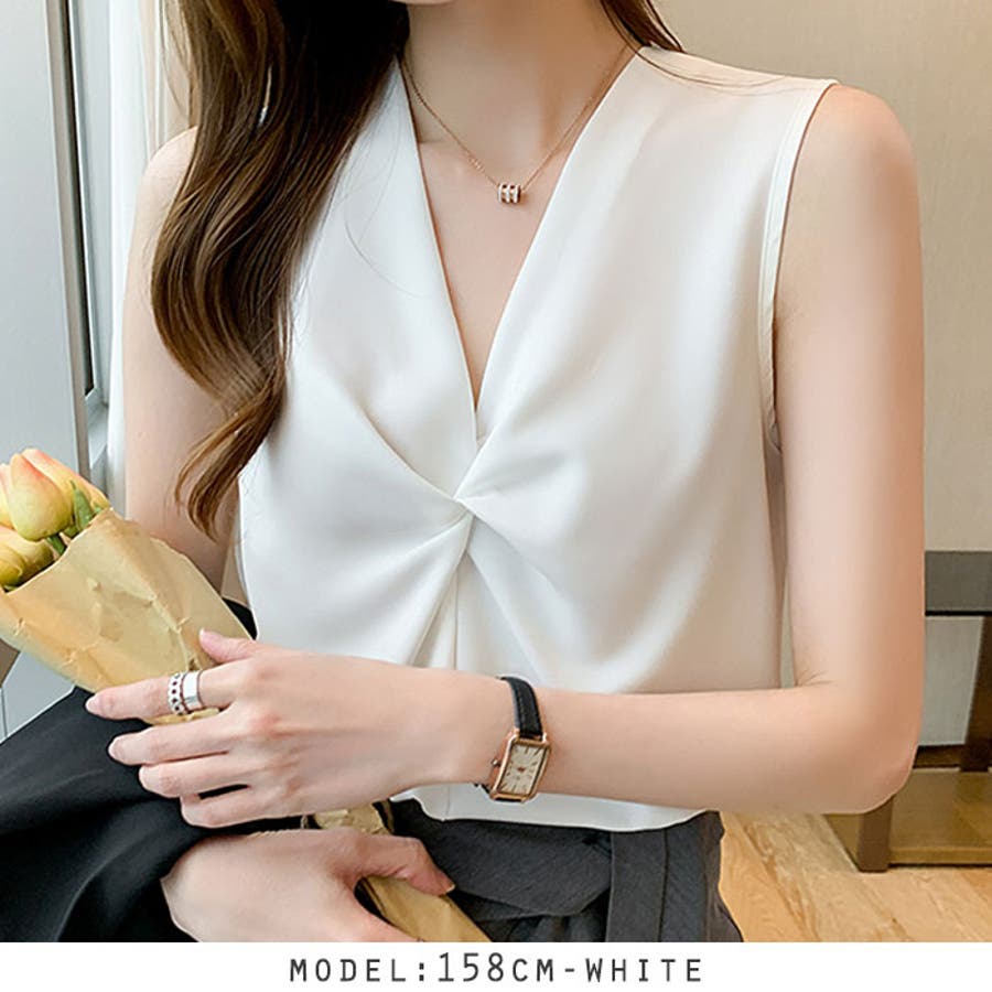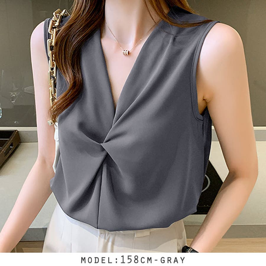 トップス 袖なし Vネック ツイスト シンプル オフィス カジュアル オケージョン 春 夏 秋