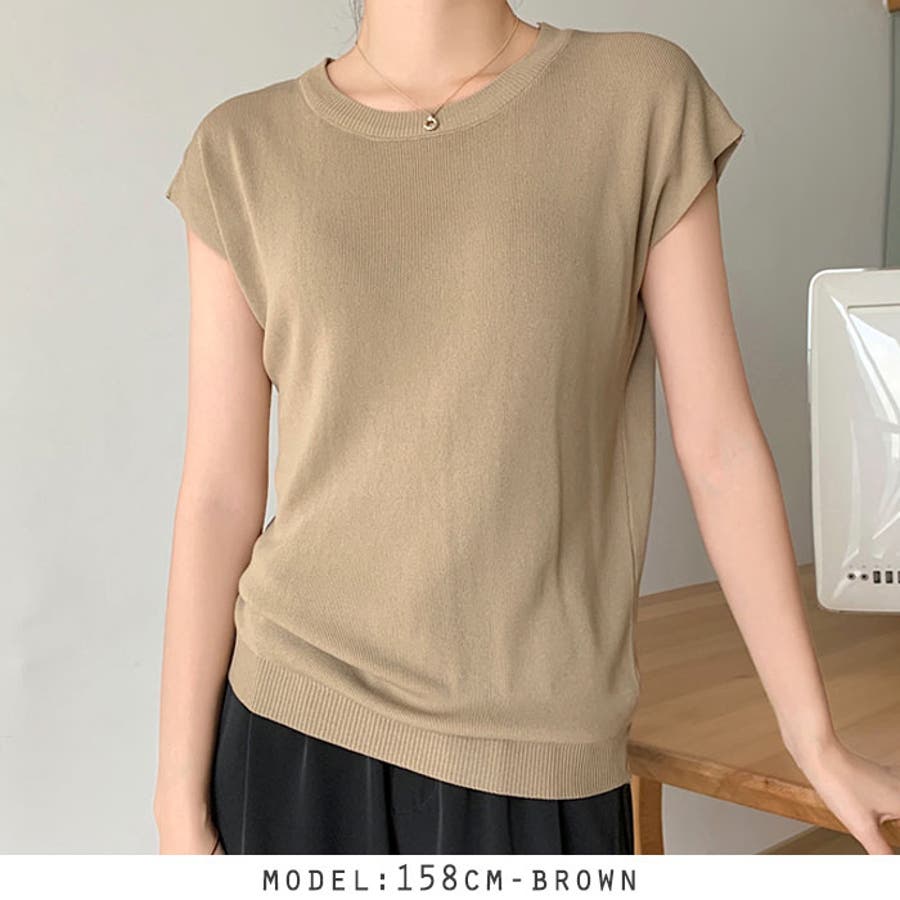 フレンチスリーブサマーニットトップス