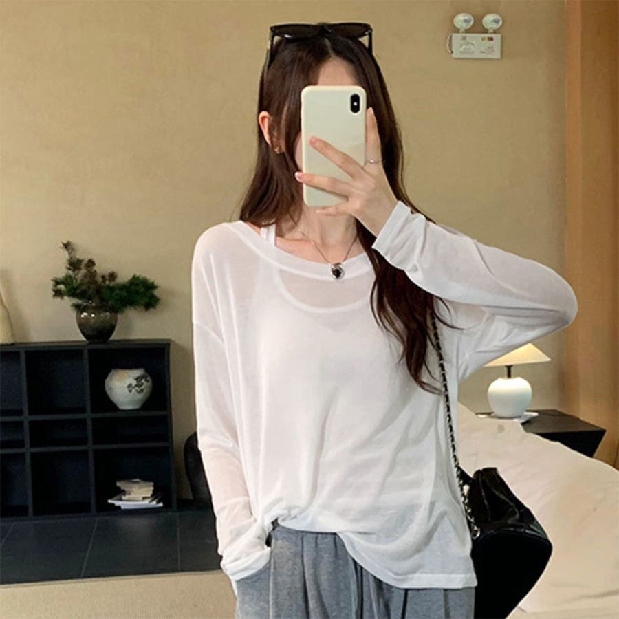シアートップス 2点セット 透け感 秋 韓国ファッション