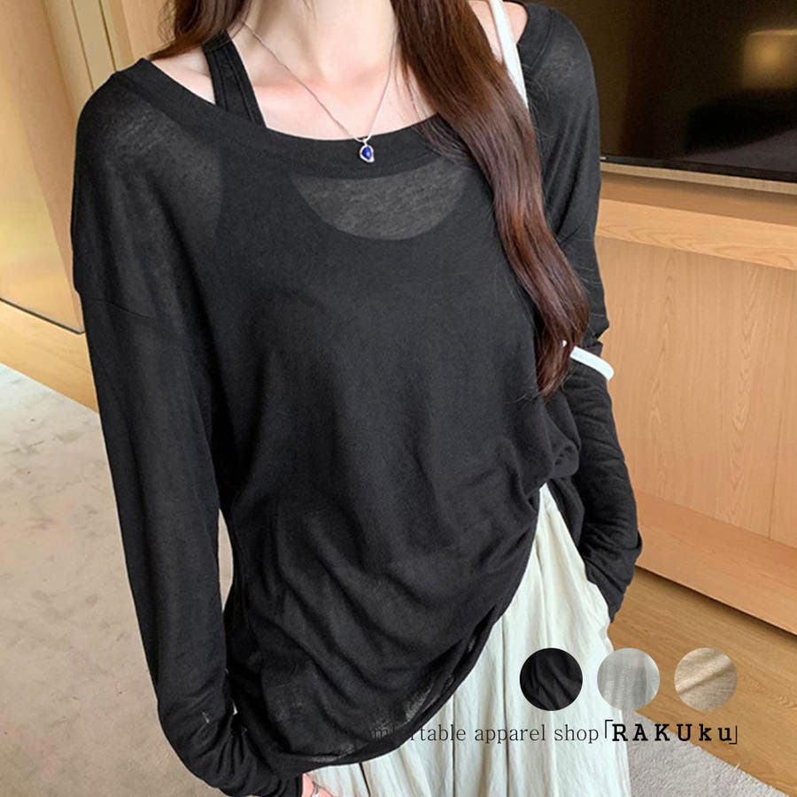 レーディス トップス Tシャツ カジュアルコーデ デイリーコーデ シンプル シアートップス タンクトップ 2点セット シアー透け感 長袖 カジュアル きれいめ 抜け感 楽ちん 秋冬 おすすめ レディース オシャレ トレンド 人気 プチプラ 韓国ファッション 韓国 韓国風 rakuku 24aw1502