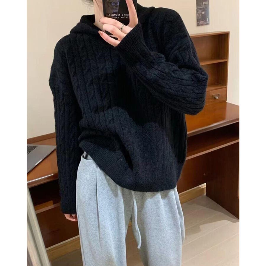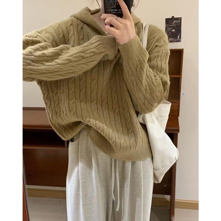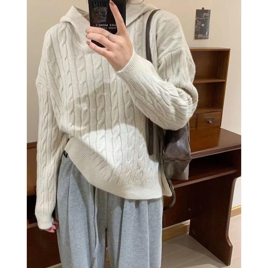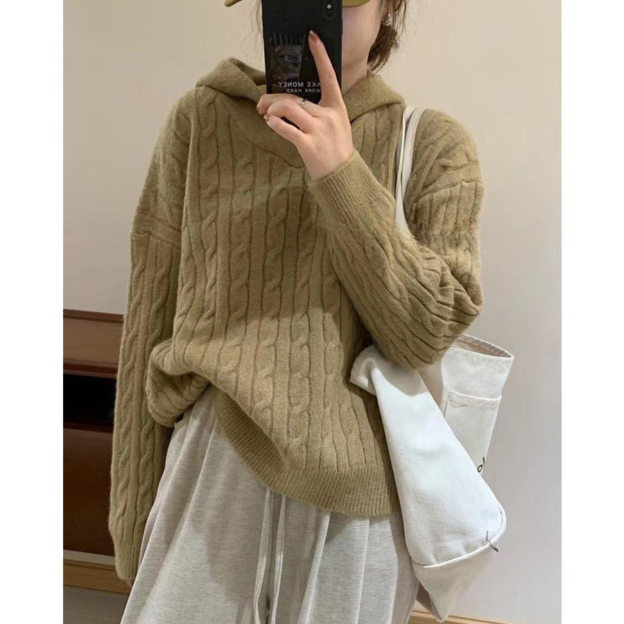 ケーブルニット セーター フード付き 秋冬 フードニット 韓国ファッション