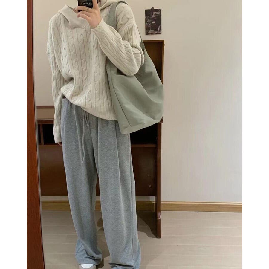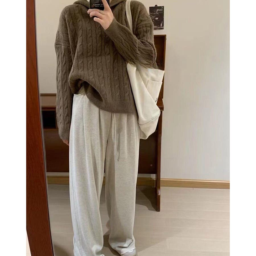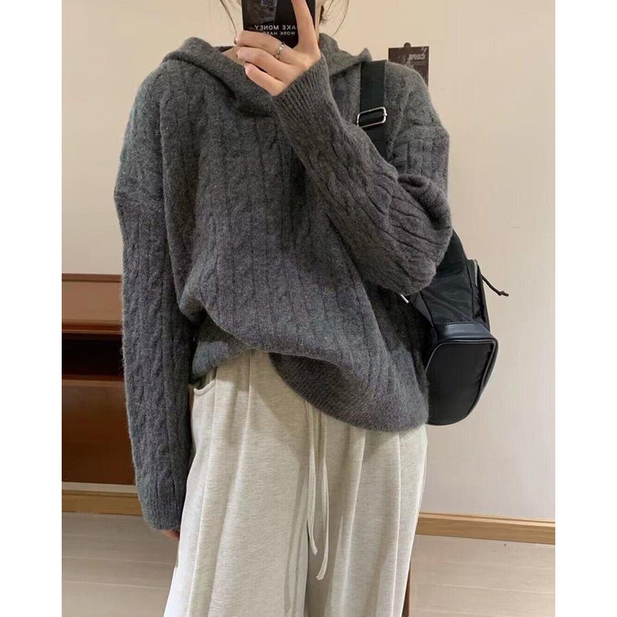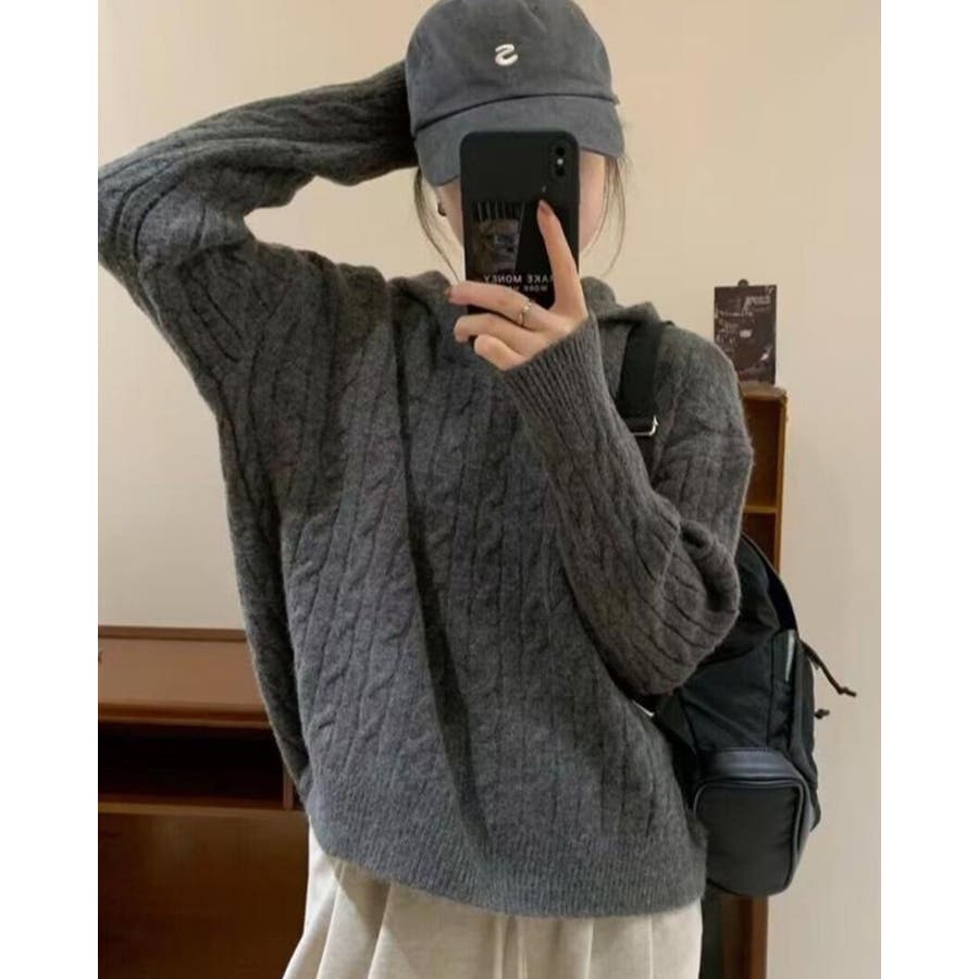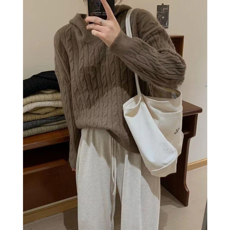 ケーブルニット セーター フード付き 秋冬 フードニット 韓国ファッション