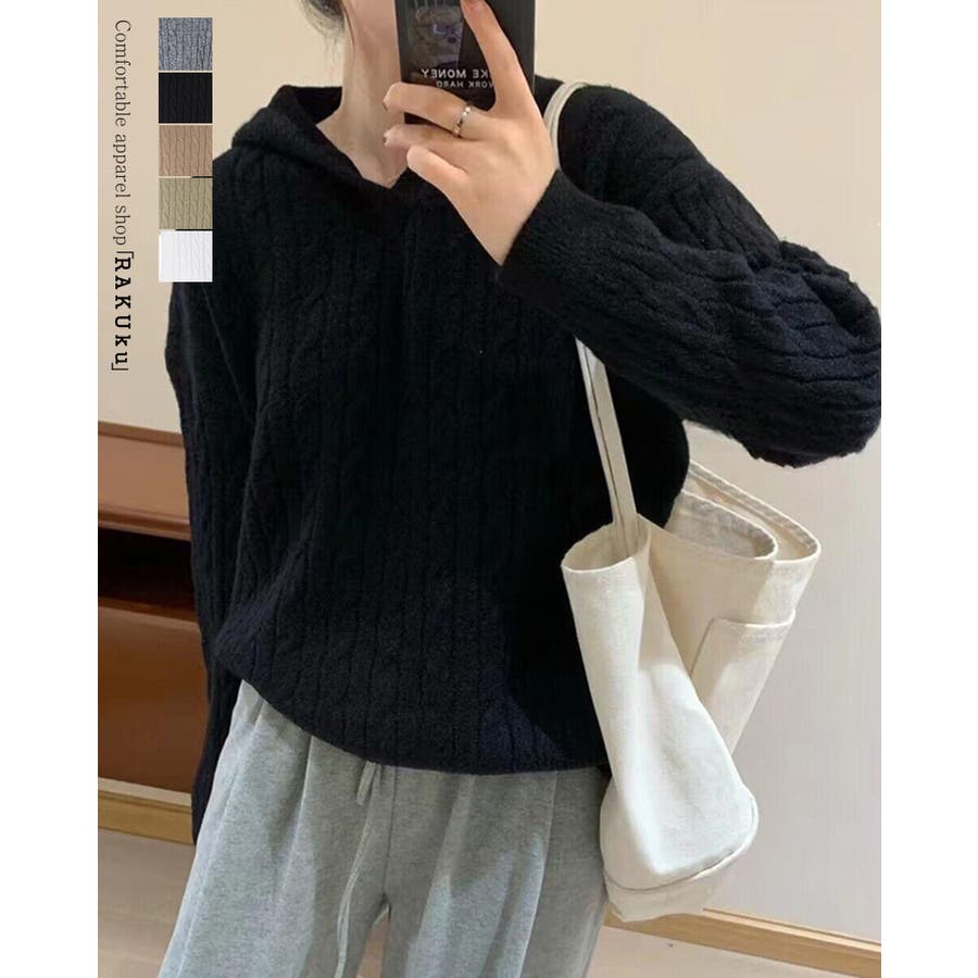 レーディス トップス ニット ケーブルニット フード付き セーター 秋冬 暖かい 無地 カジュアルコーデ デイリーコーデ シンプル お出かけ 韓国ファッション 韓国 韓国風 rakuku