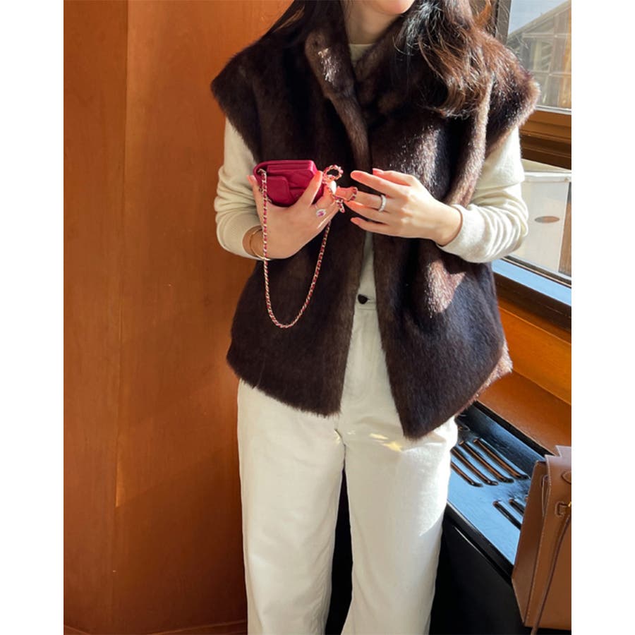 レーディス アウター ジャケット ミンク ミンク風 エコファー ベスト 秋冬 カジュアルコーデ デイリーコーデ シンプル 20代 30代 40代 50代 お出かけ 韓国ファッション 韓国 韓国風 rakuku