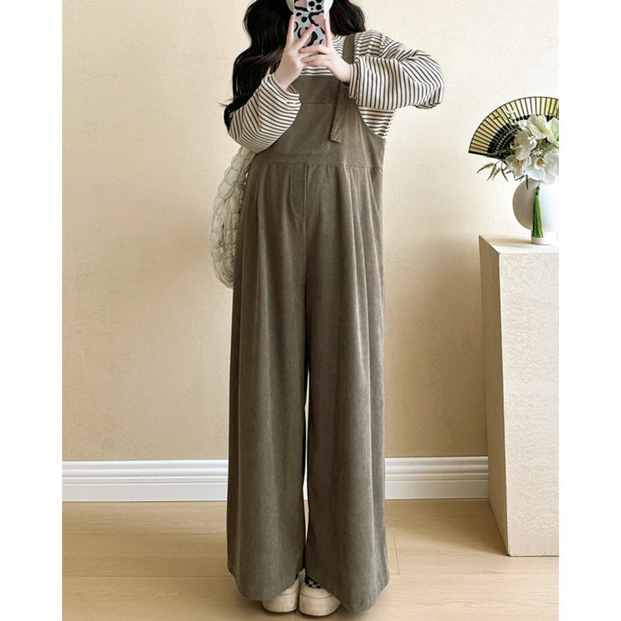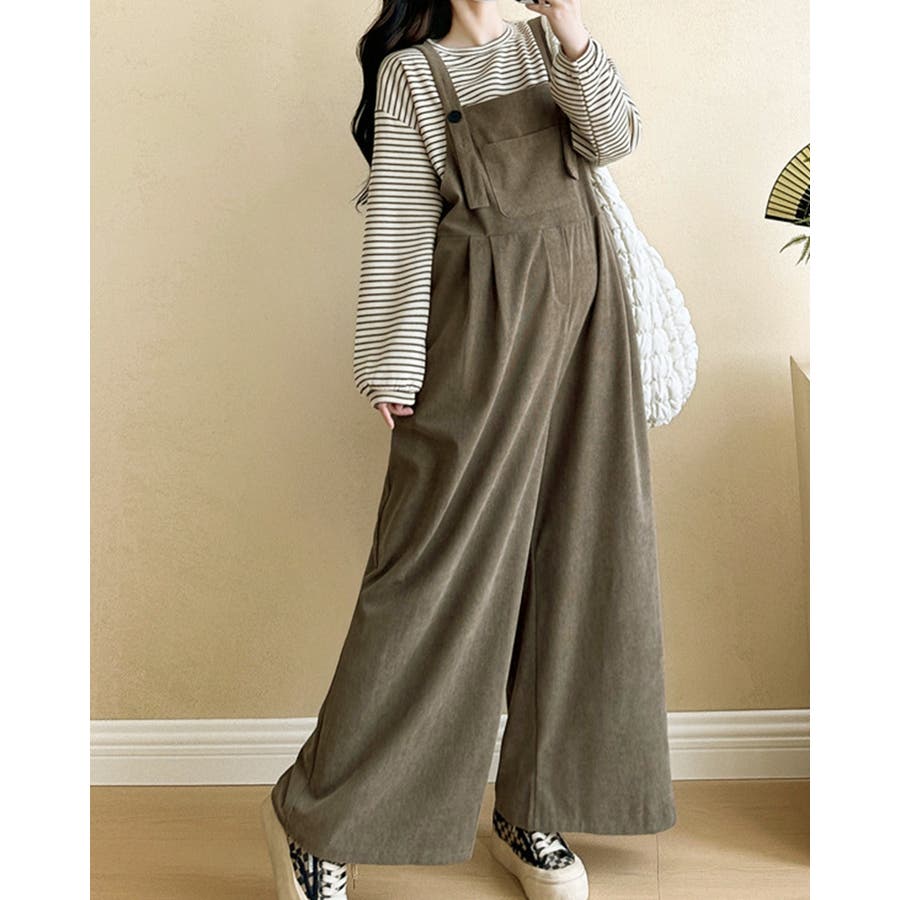 サロペット コーデュロイ マタニティウェア 産前産後 ワイドパンツサロペット オールインワン レディース 大きいサイズ 肩紐調整 24aw7507